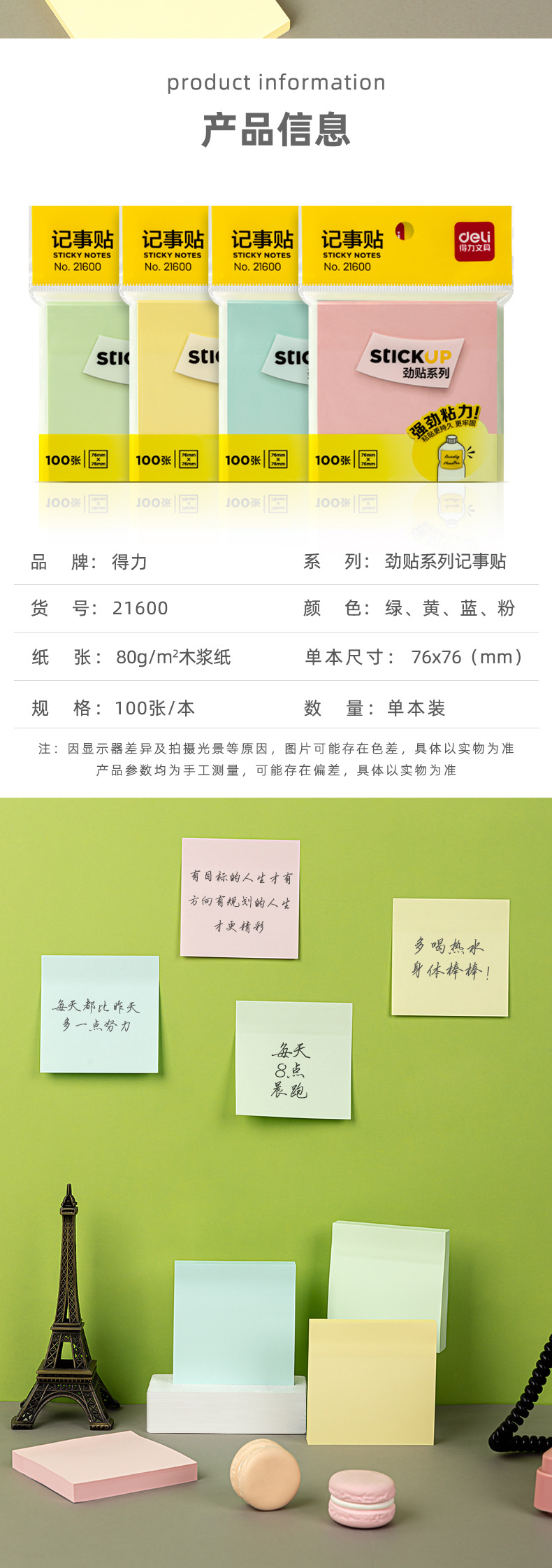 델리 컬러 포스트잇 노트 학생 사무실 노트 포스트잇 노트 포스트잇 노트 강력한 접착 문구스토어 가기