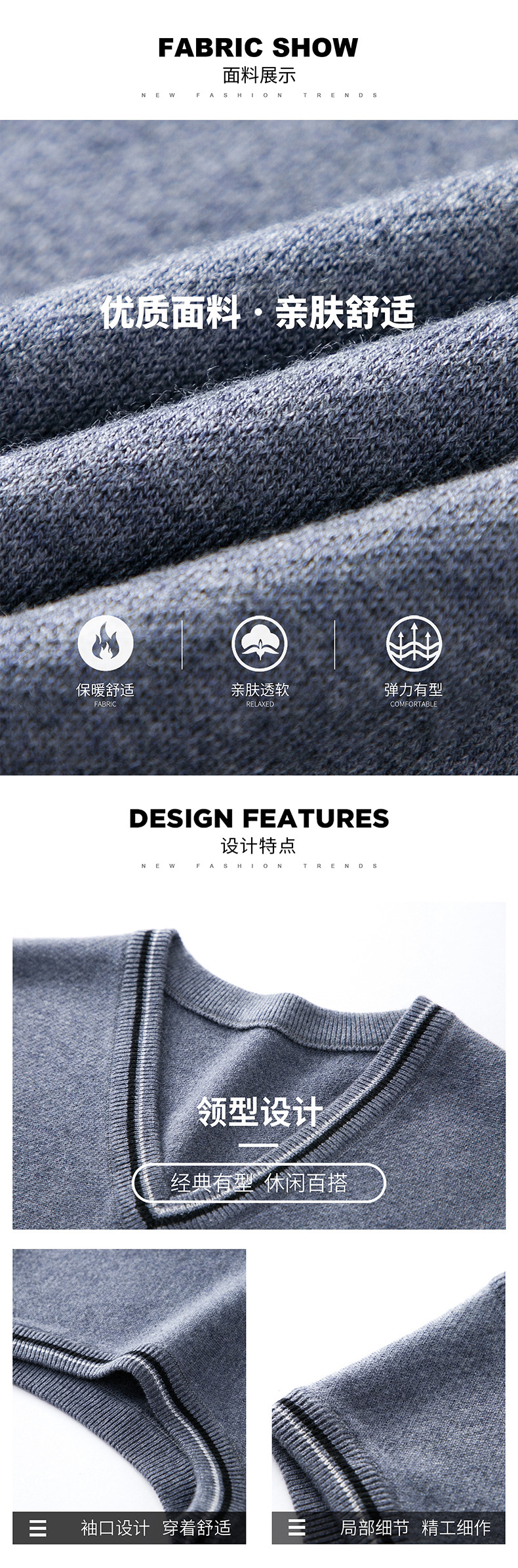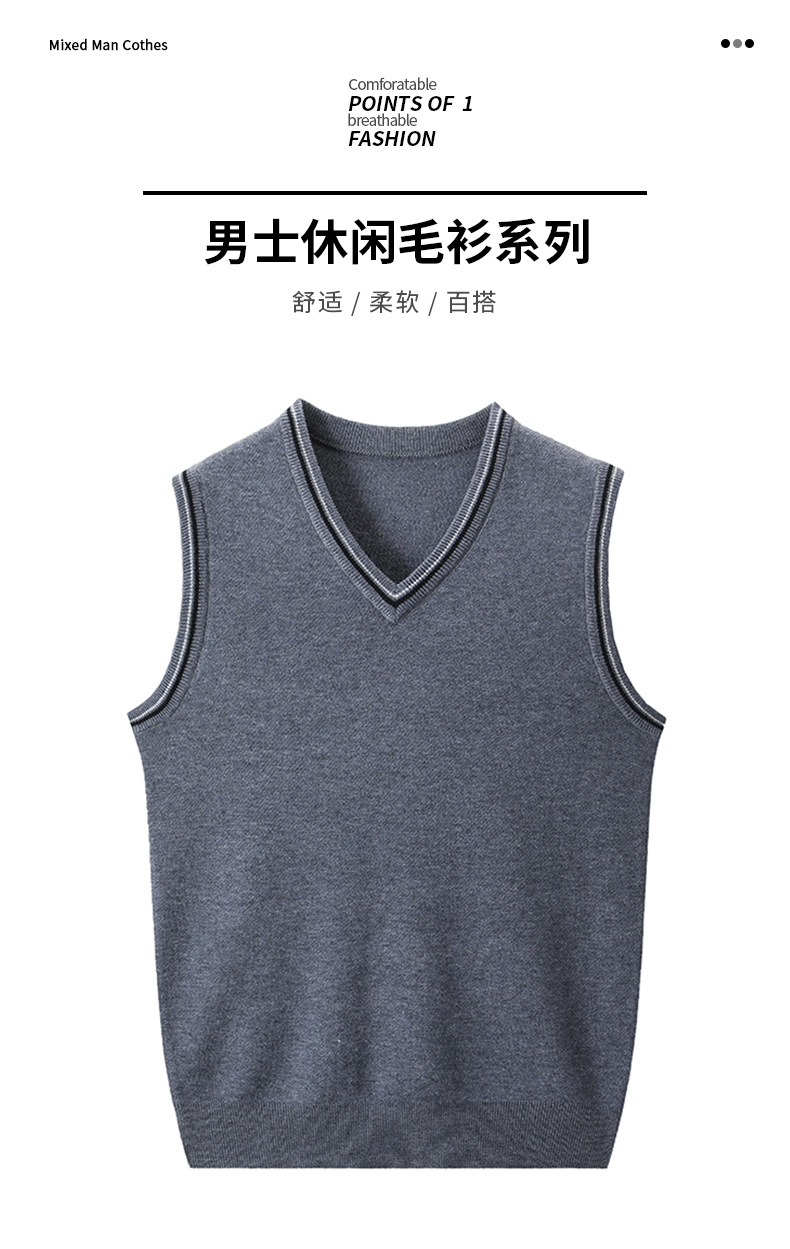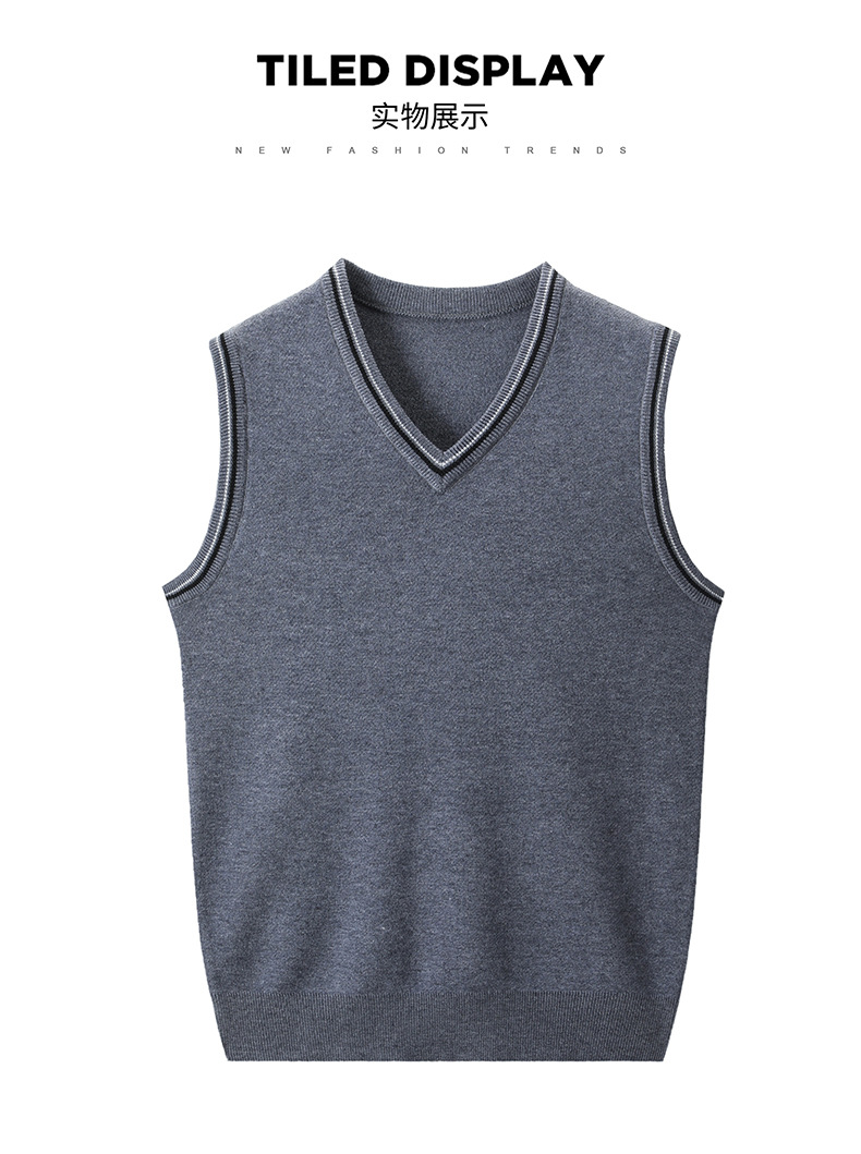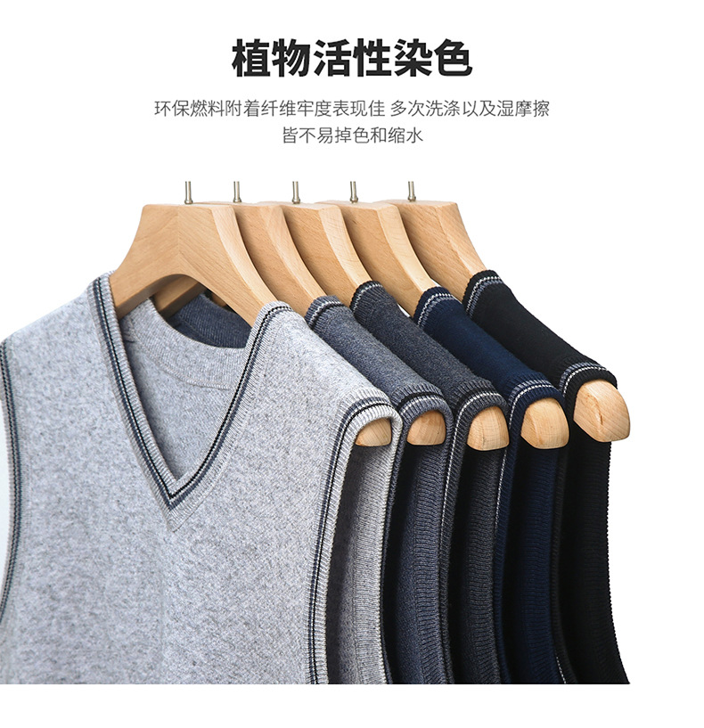 2023 가을 겨울 남성용 울 조끼 브이넥 통기성 보온 스웨터 조끼 단색 카디건 두꺼운