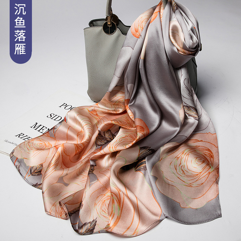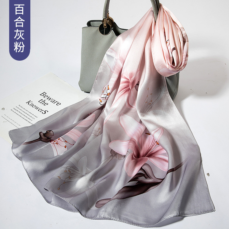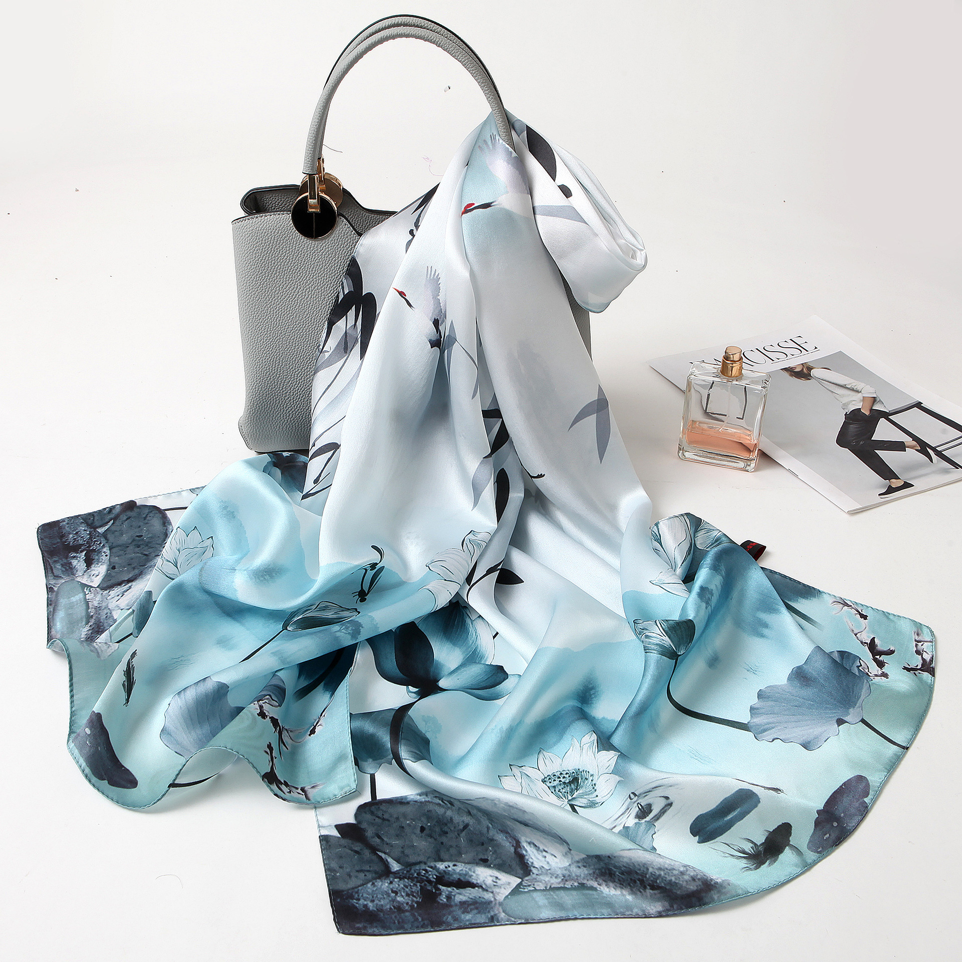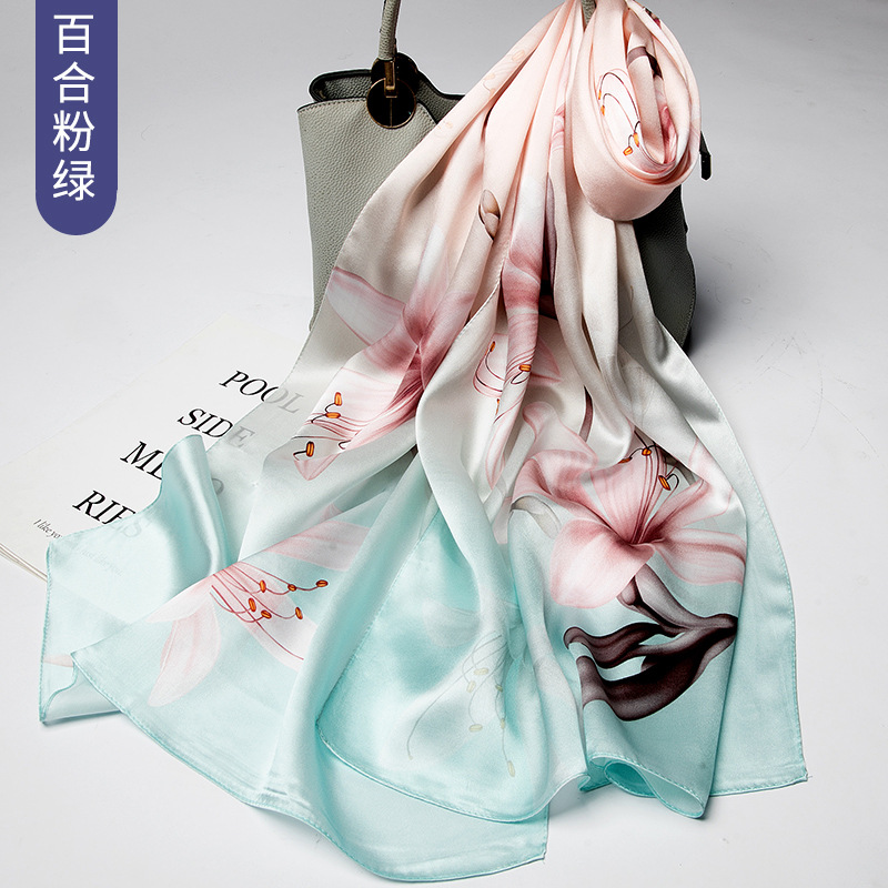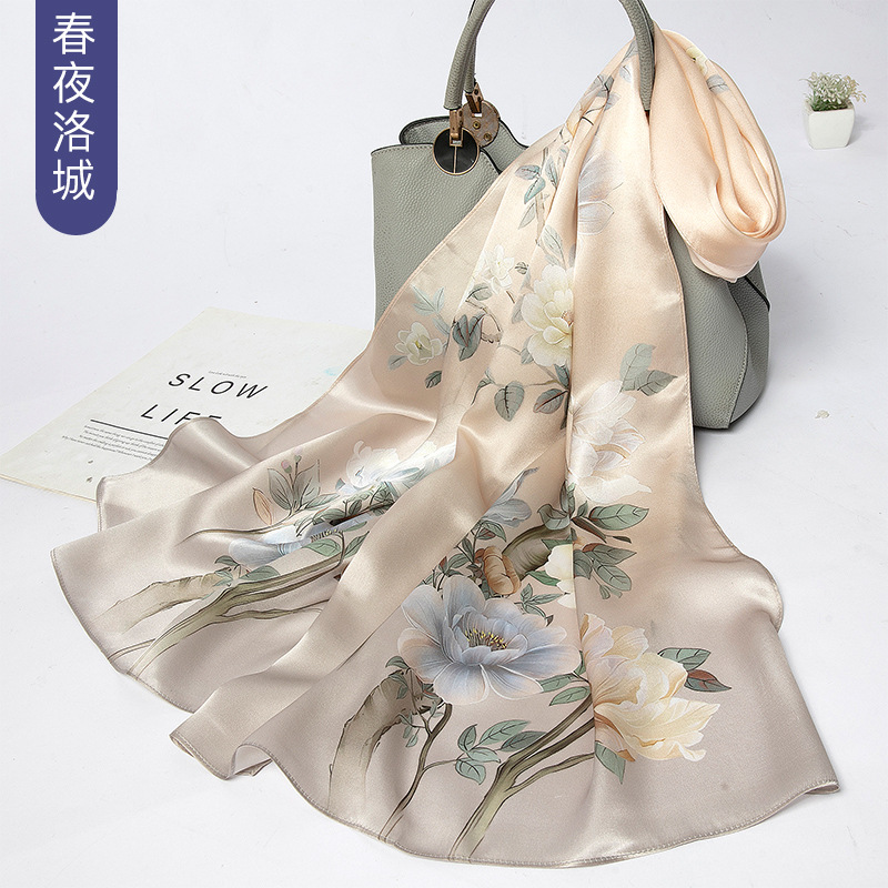 항저우 실크 실크 스카프 숙녀 새로운 100 순수 뽕나무 실크 스카프 새틴 숄 공장 도매 상품