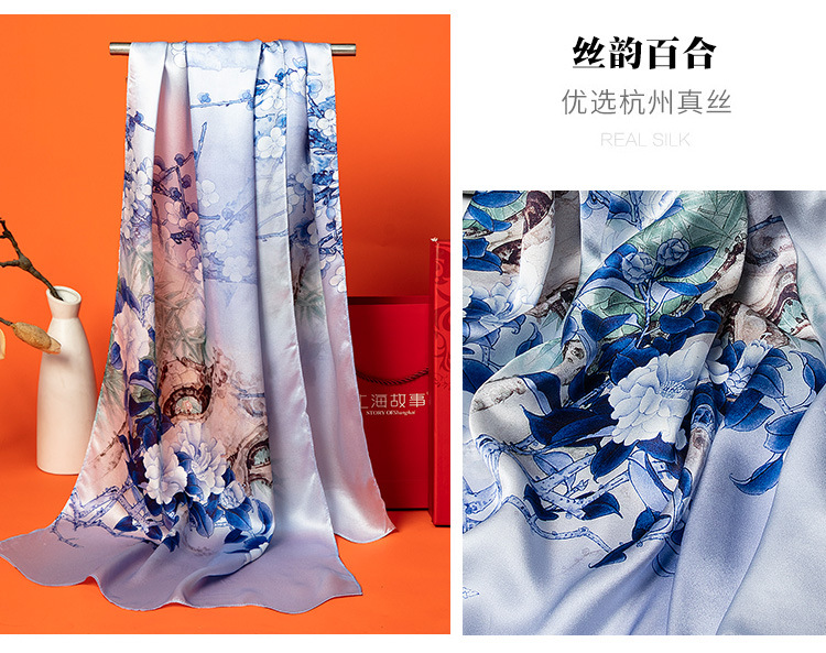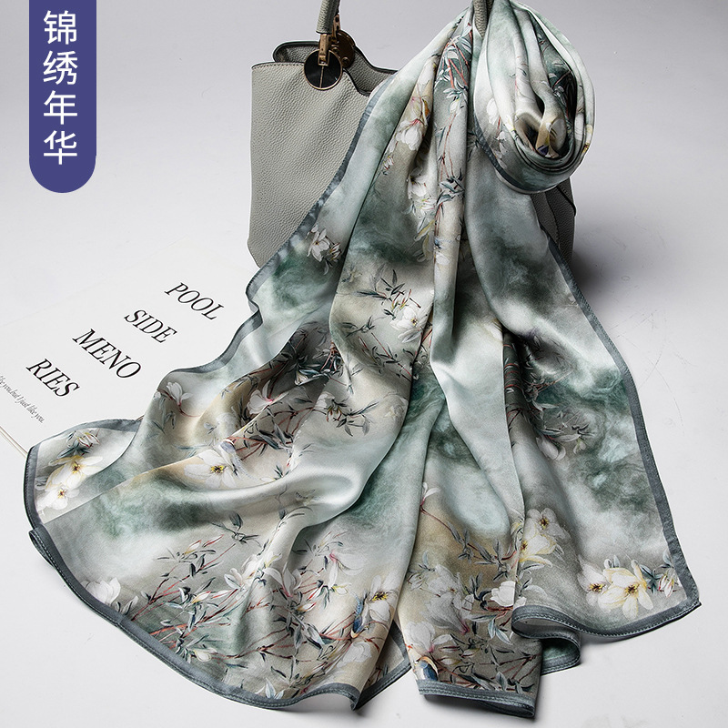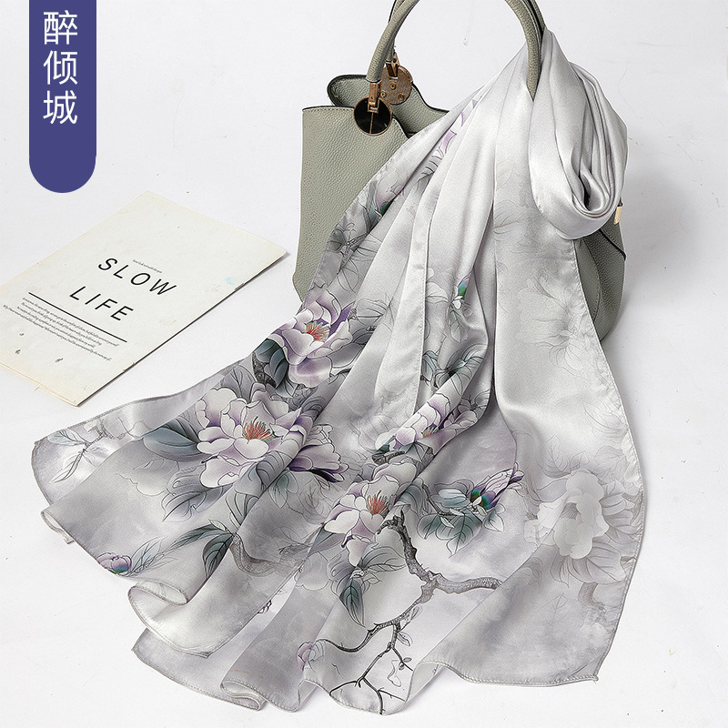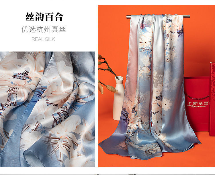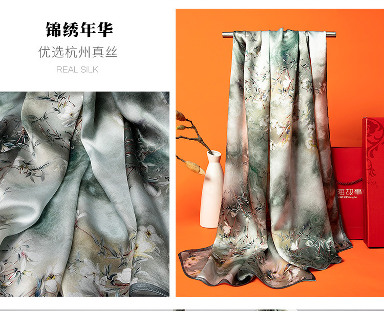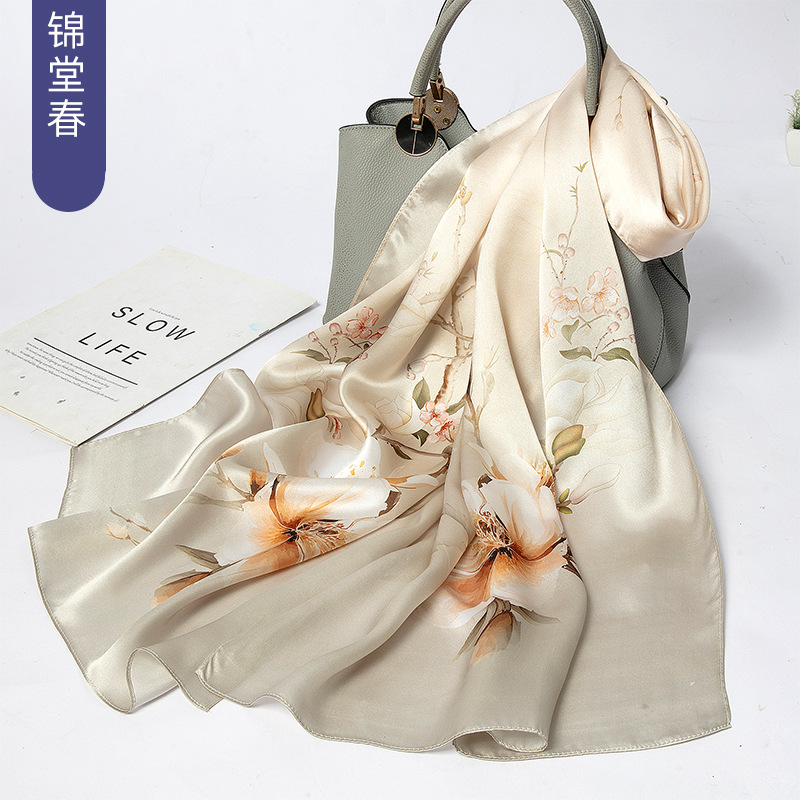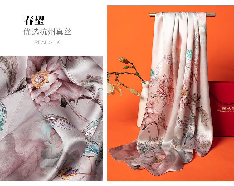 항저우 실크 실크 스카프 숙녀 새로운 100 순수 뽕나무 실크 스카프 새틴 숄 공장 도매 상품스토어 가기