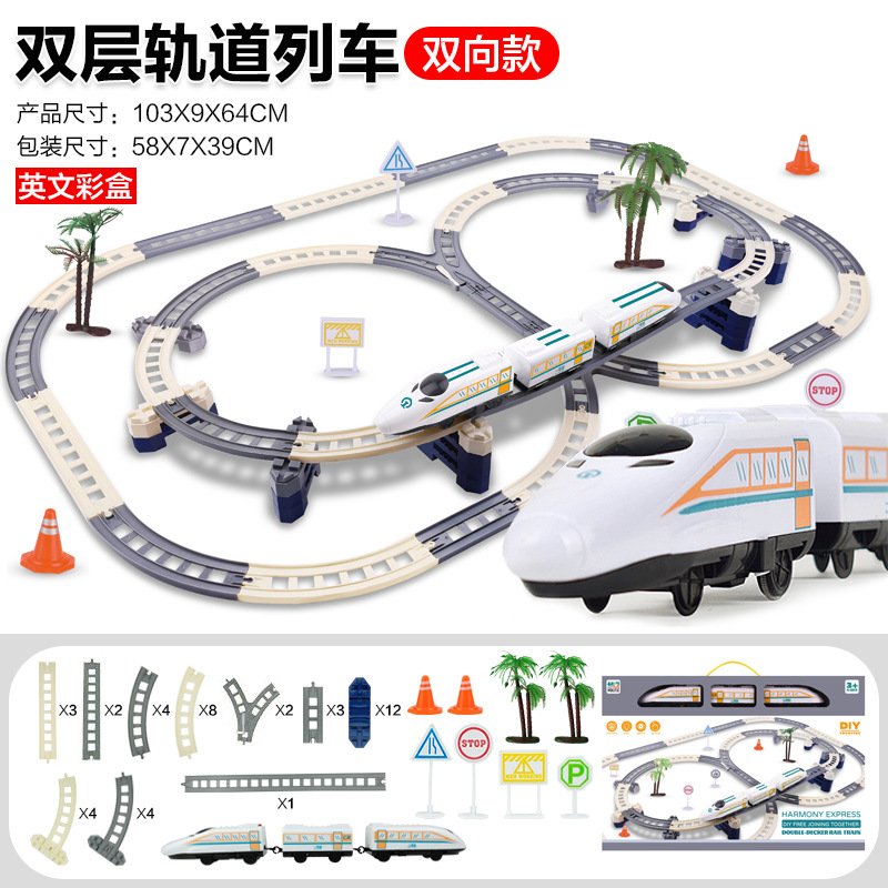 百变双层轨道车列车 拼装电动高速轨道益智玩具儿童diy玩具 批发