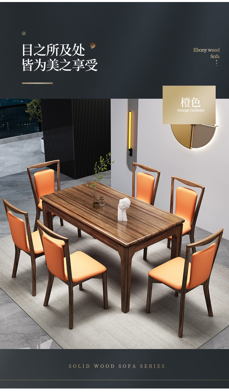 • 1.5m 식탁 + 6 의자 "단단한 나무 데스크탑]
