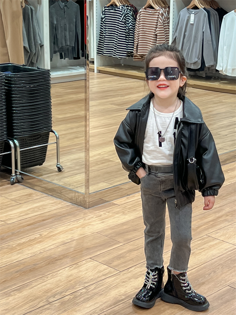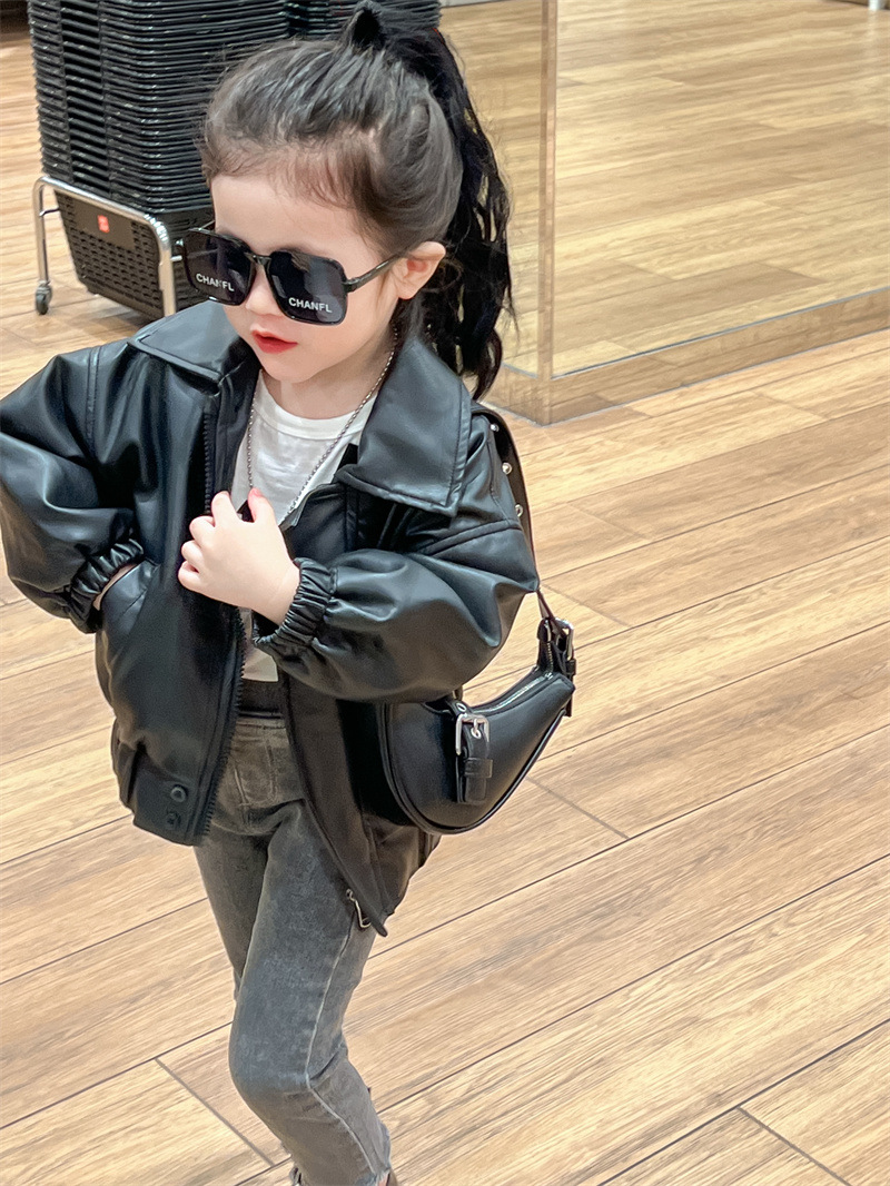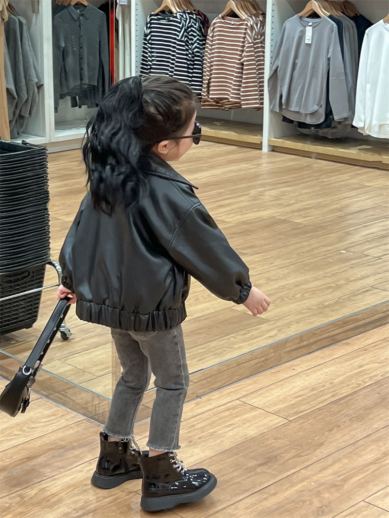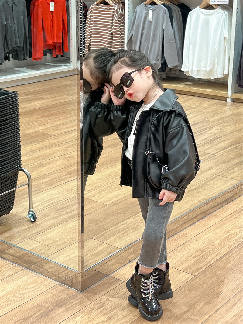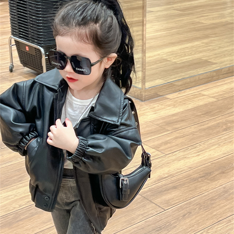 봄과 가을 여아 한국 느슨한 가죽 자켓 어린이 2023 새로운 어린이 블랙 가죽 자켓 슬림핏 청바지스토어 가기