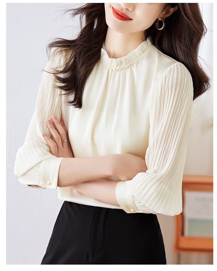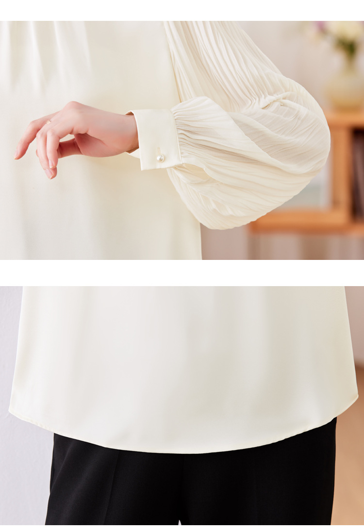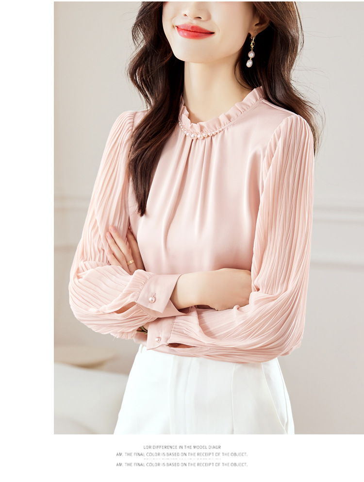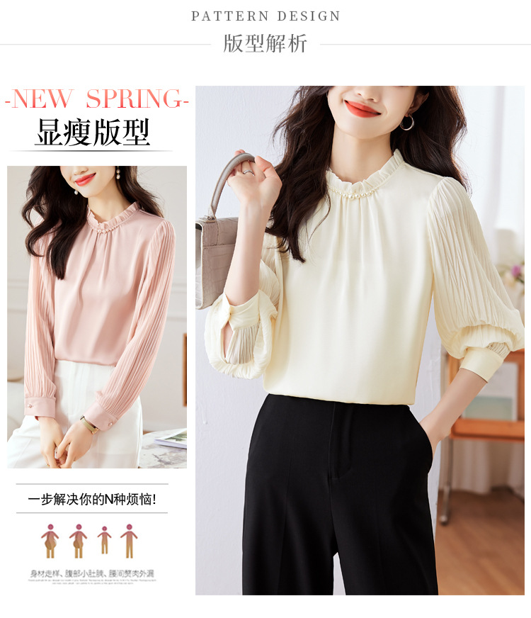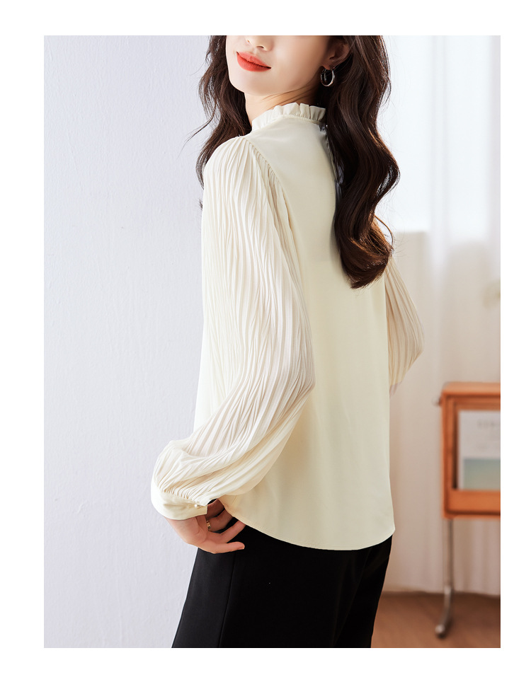 단색 주름 버블 슬리브 쉬폰 셔츠 여자의 2023 새로운 가을 심플 패션 외국 기질 작은 셔츠 재킷 도매스토어 가기