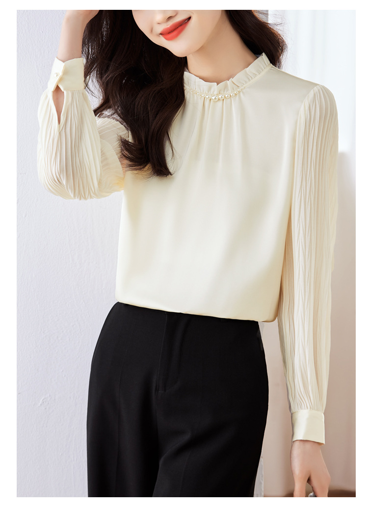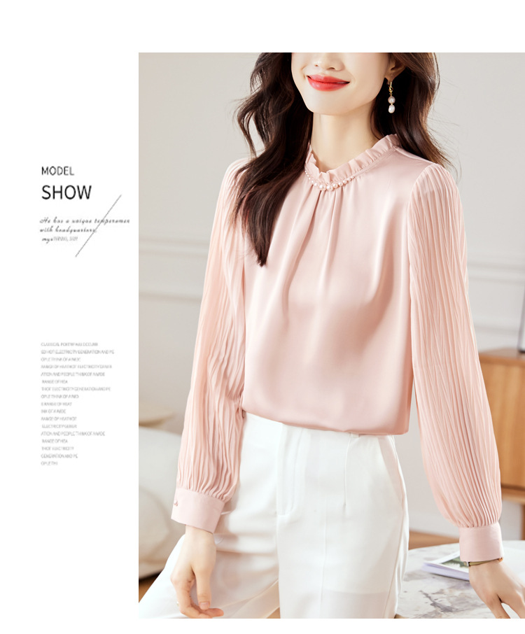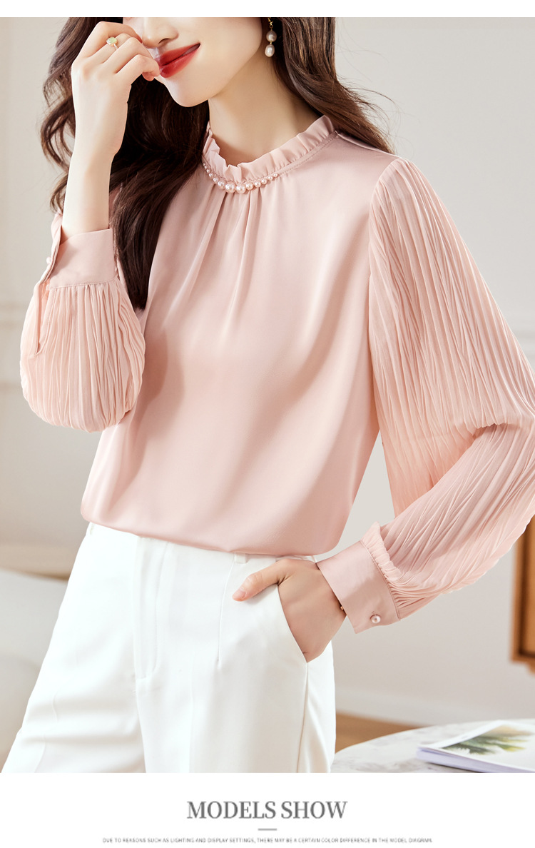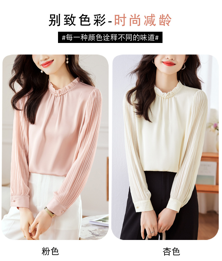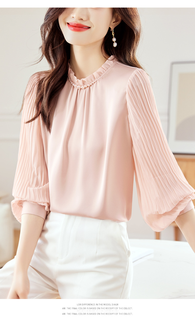 단색 주름 버블 슬리브 쉬폰 셔츠 여자의 2023 새로운 가을 심플 패션 외국 기질 작은 셔츠 재킷 도매스토어 가기