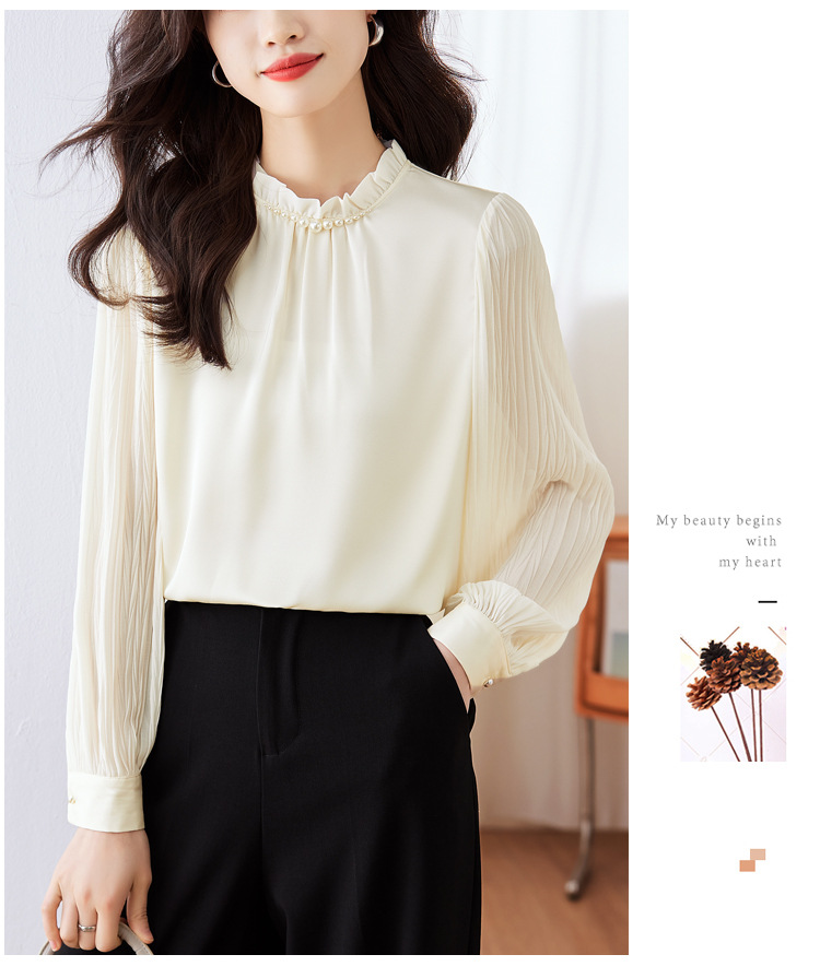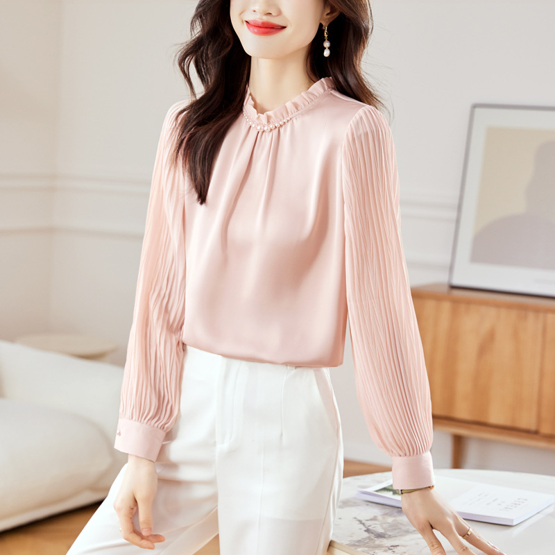 단색 주름 버블 슬리브 쉬폰 셔츠 여자의 2023 새로운 가을 심플 패션 외국 기질 작은 셔츠 재킷 도매