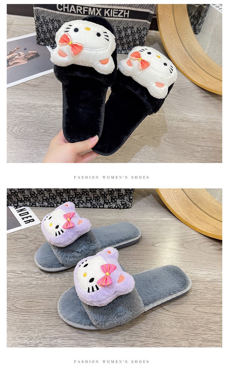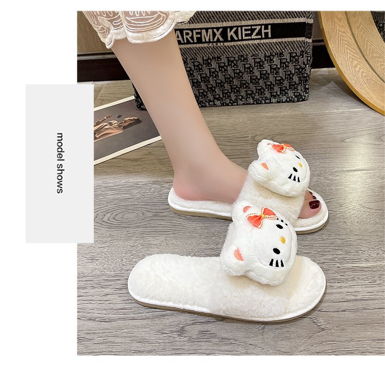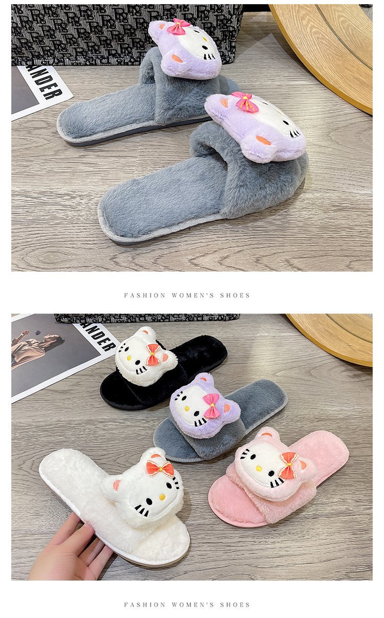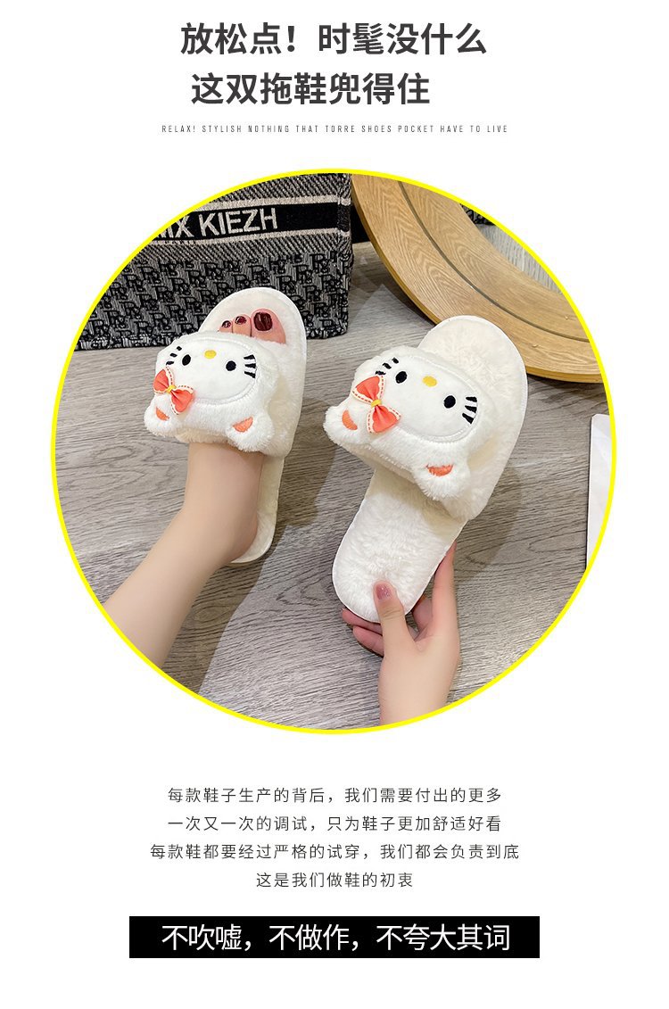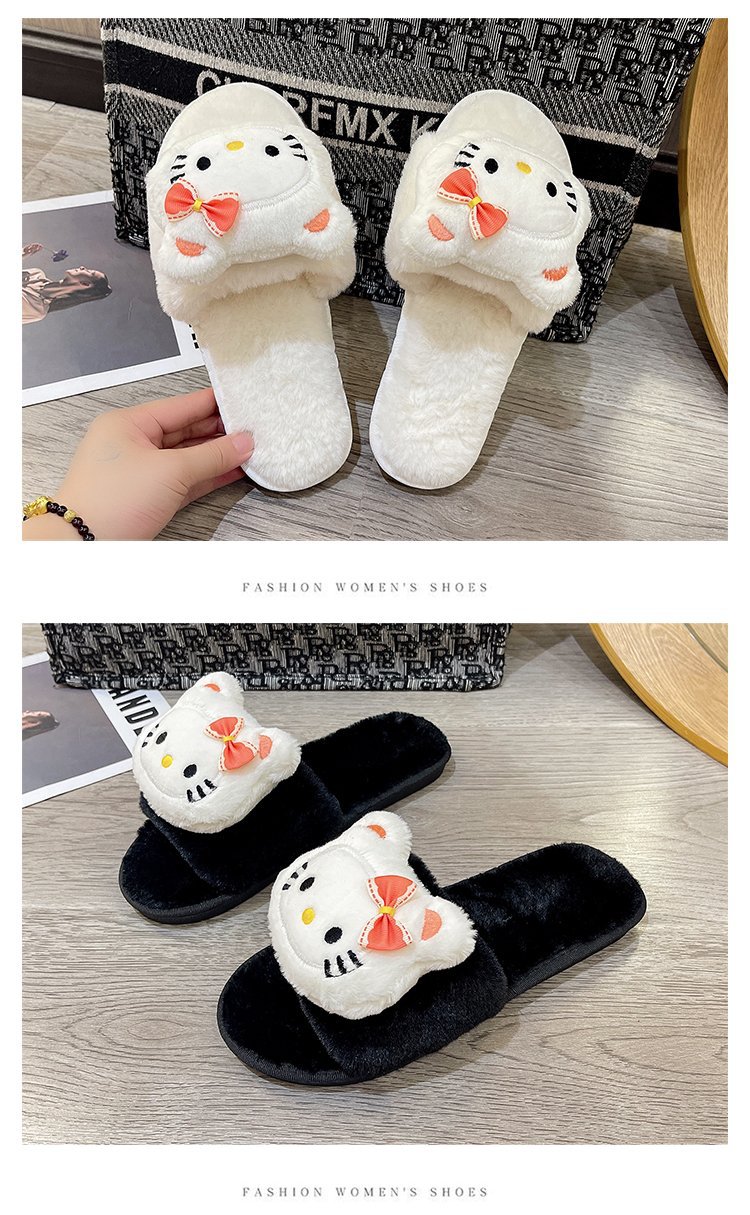 2025 가을 겨울 패션 캐주얼 플랫 다용도 귀여운 카와이 플러시 슬리퍼 여성용스토어 가기