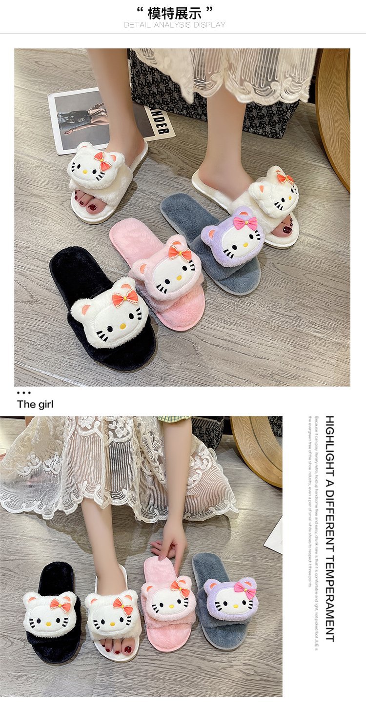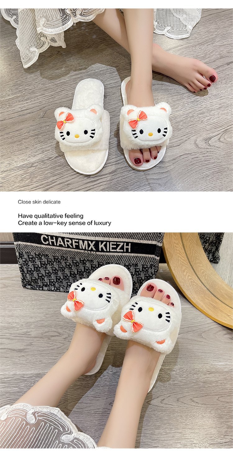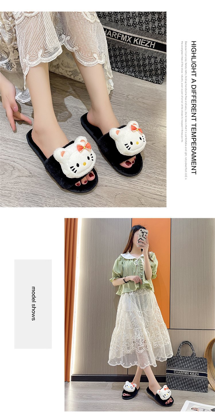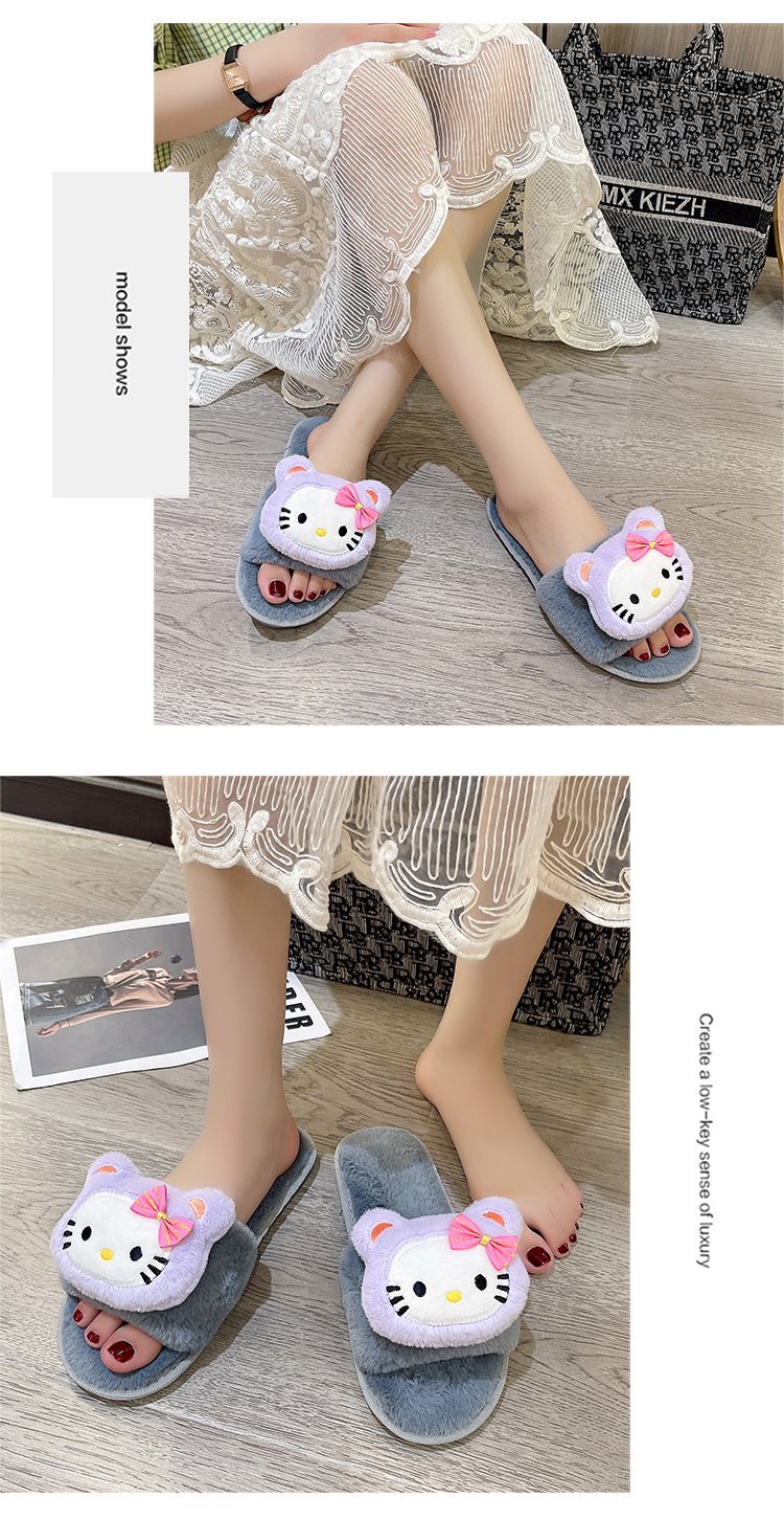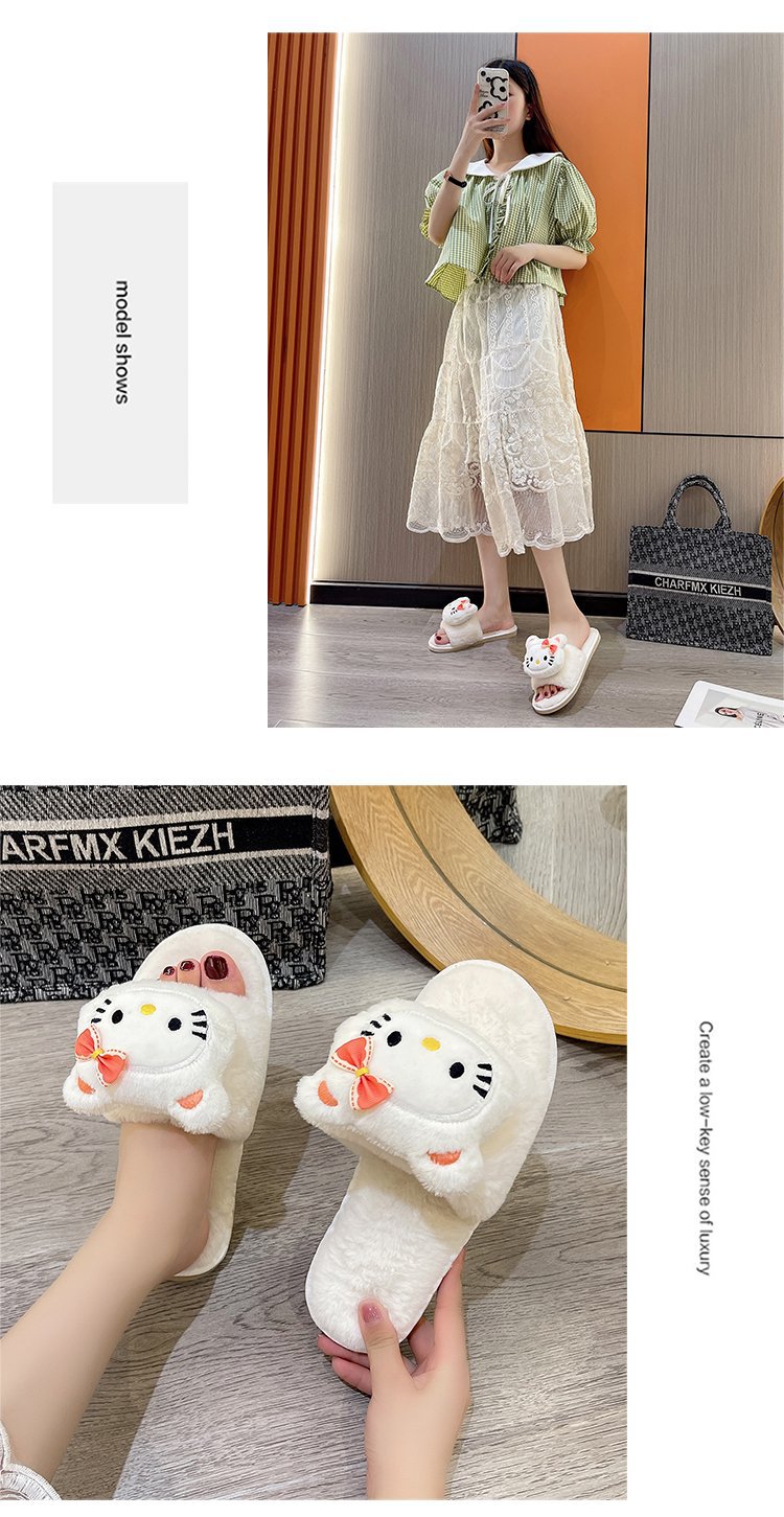 2025 가을 겨울 패션 캐주얼 플랫 다용도 귀여운 카와이 플러시 슬리퍼 여성용스토어 가기