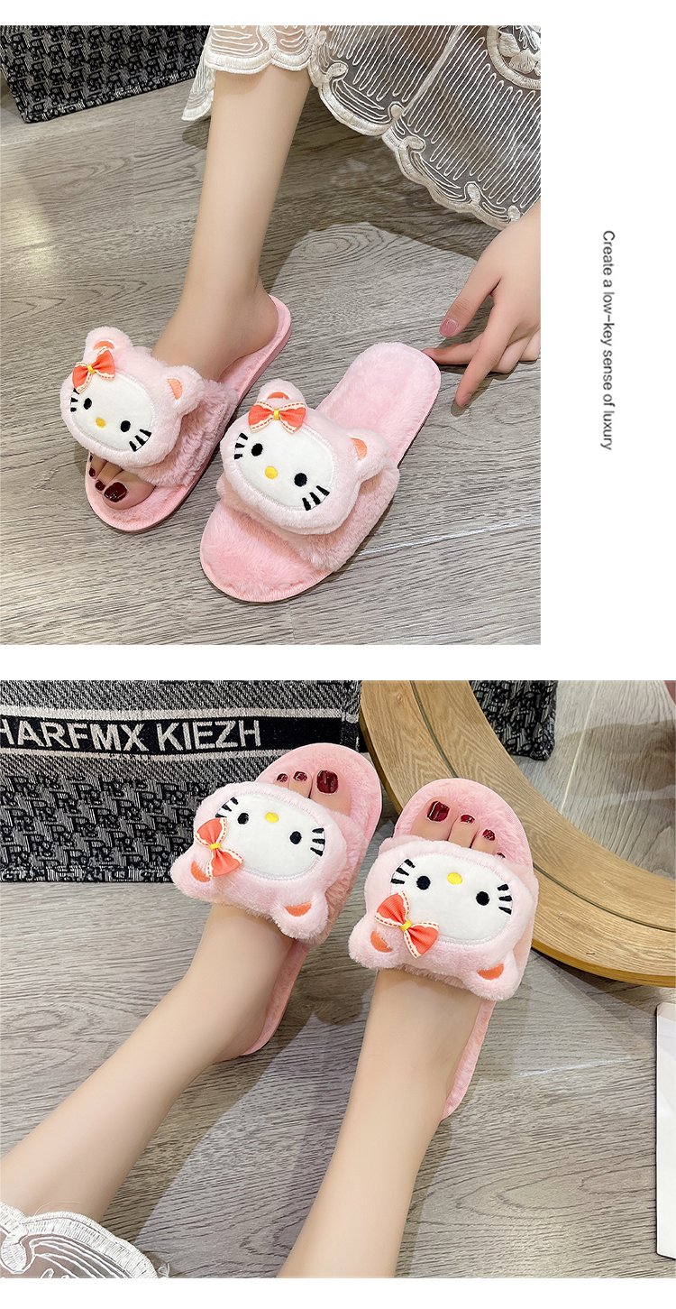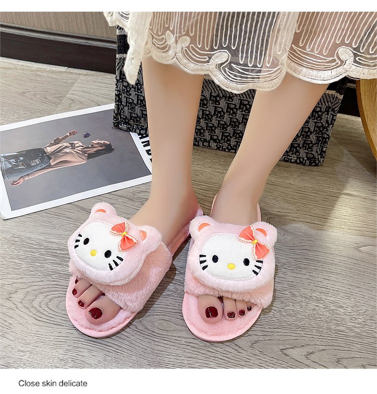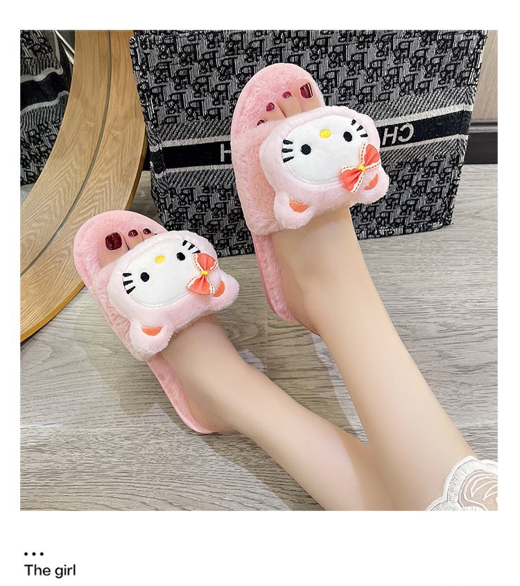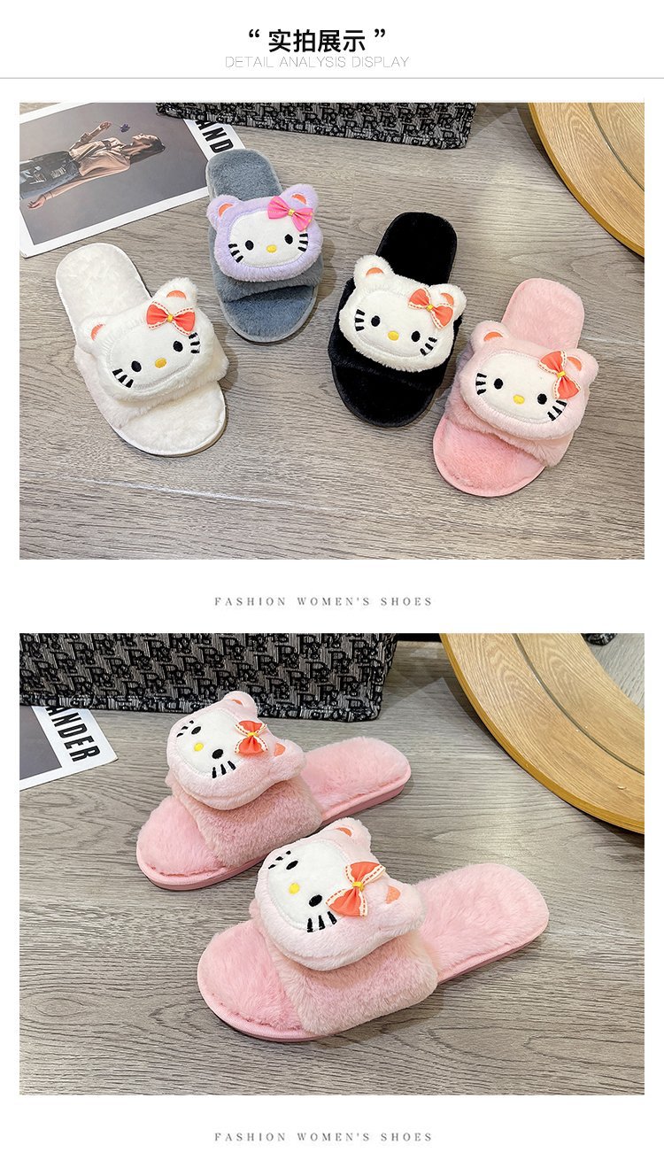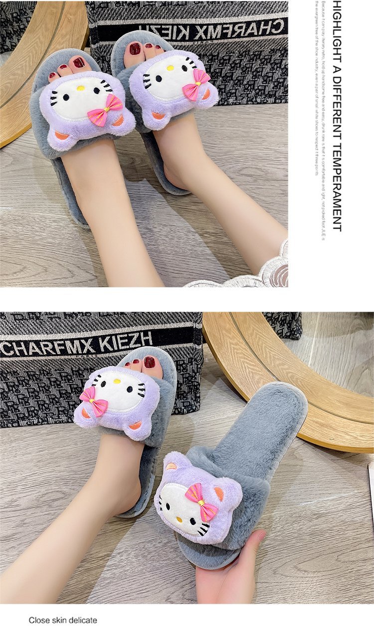 2025 가을 겨울 패션 캐주얼 플랫 다용도 귀여운 카와이 플러시 슬리퍼 여성용스토어 가기