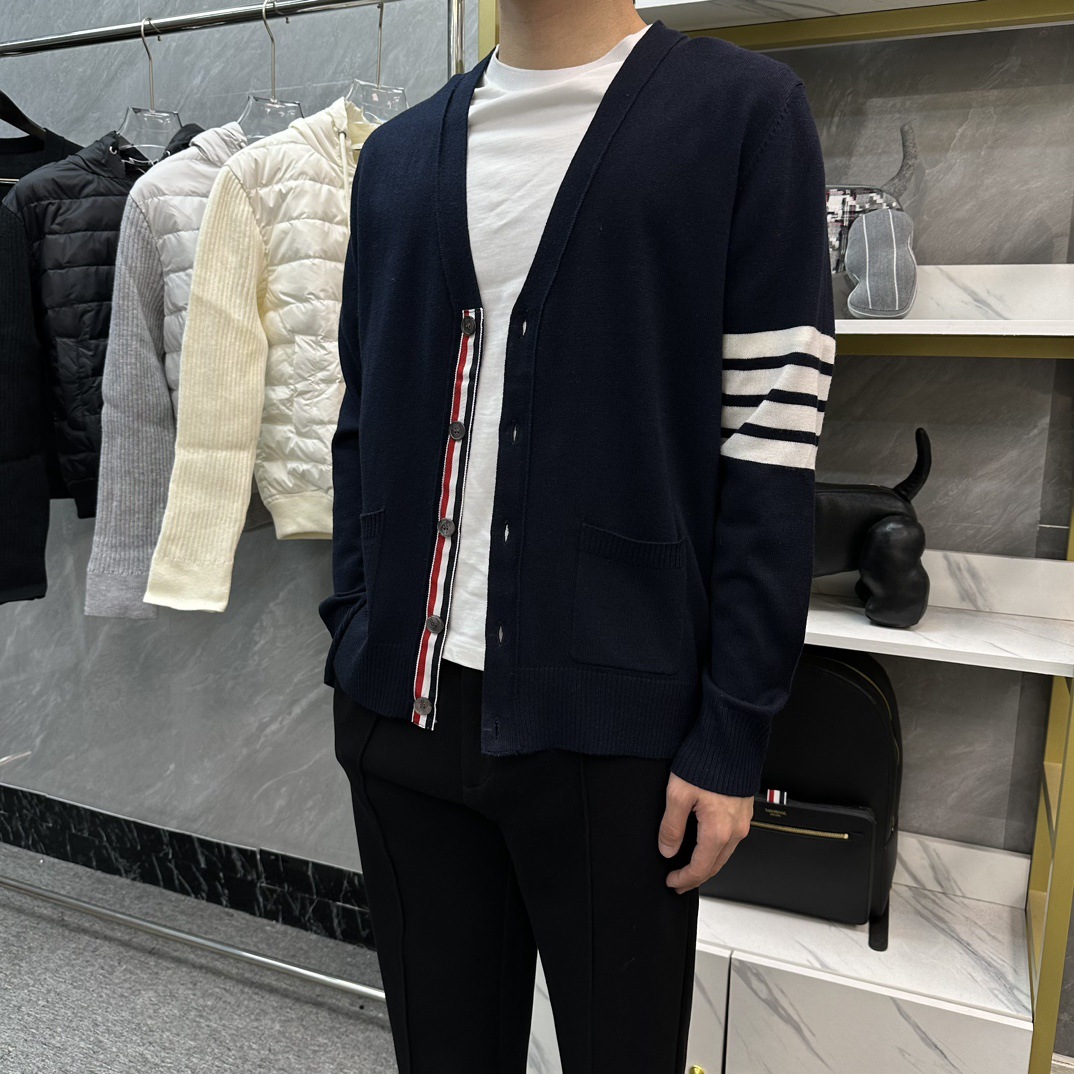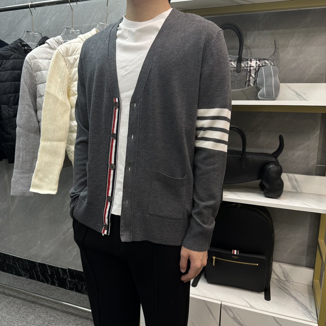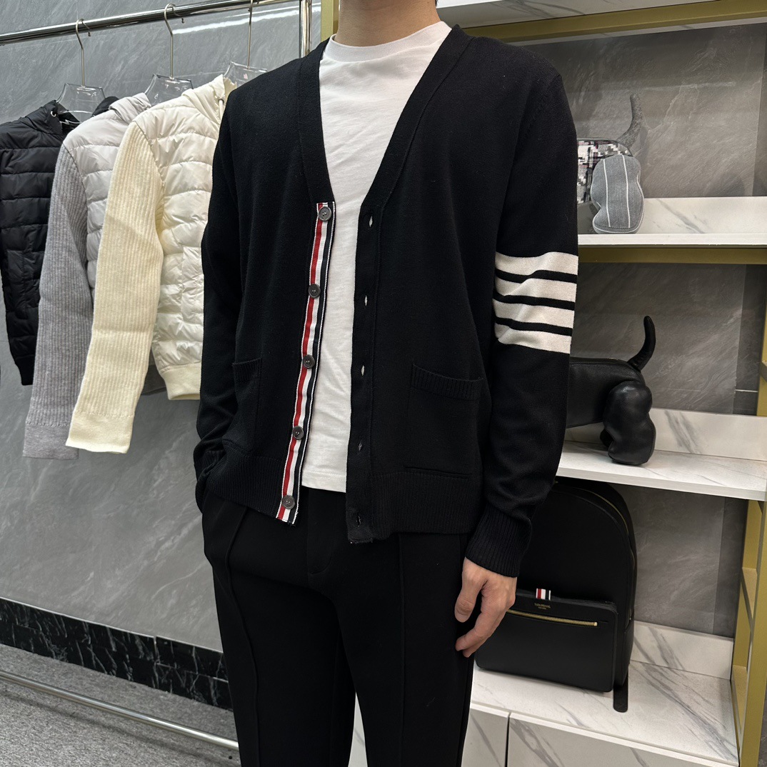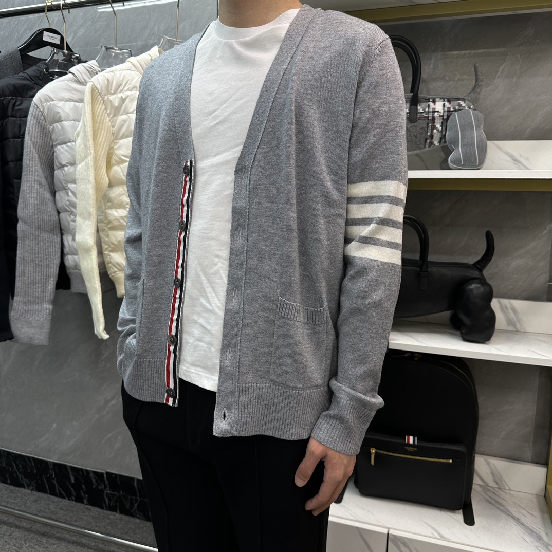 TB 니트 클래식 4 바 V 칼라 5 버튼 캐주얼 모든 매치 탑 남성 및 여성 같은 긴팔 가디건 재킷스토어 가기