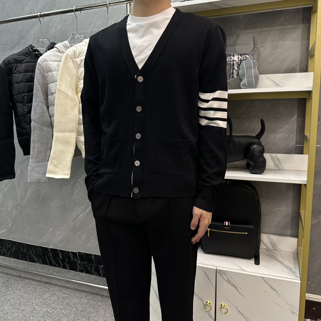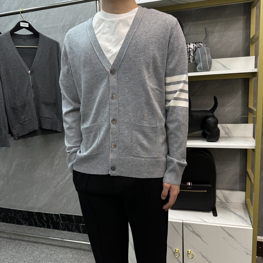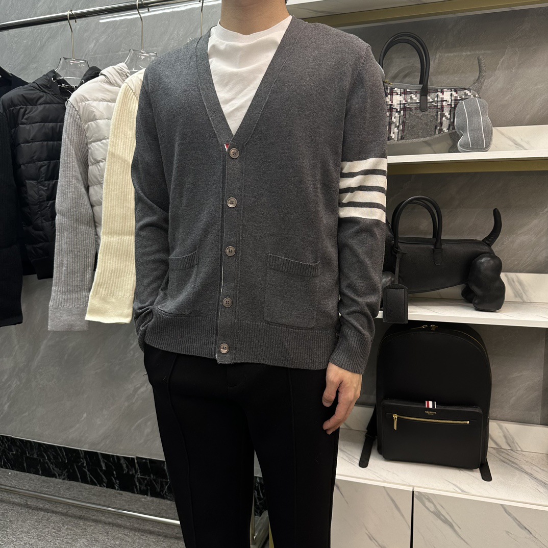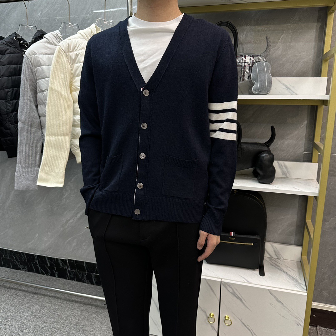 TB 니트 클래식 4 바 V 칼라 5 버튼 캐주얼 모든 매치 탑 남성 및 여성 같은 긴팔 가디건 재킷스토어 가기