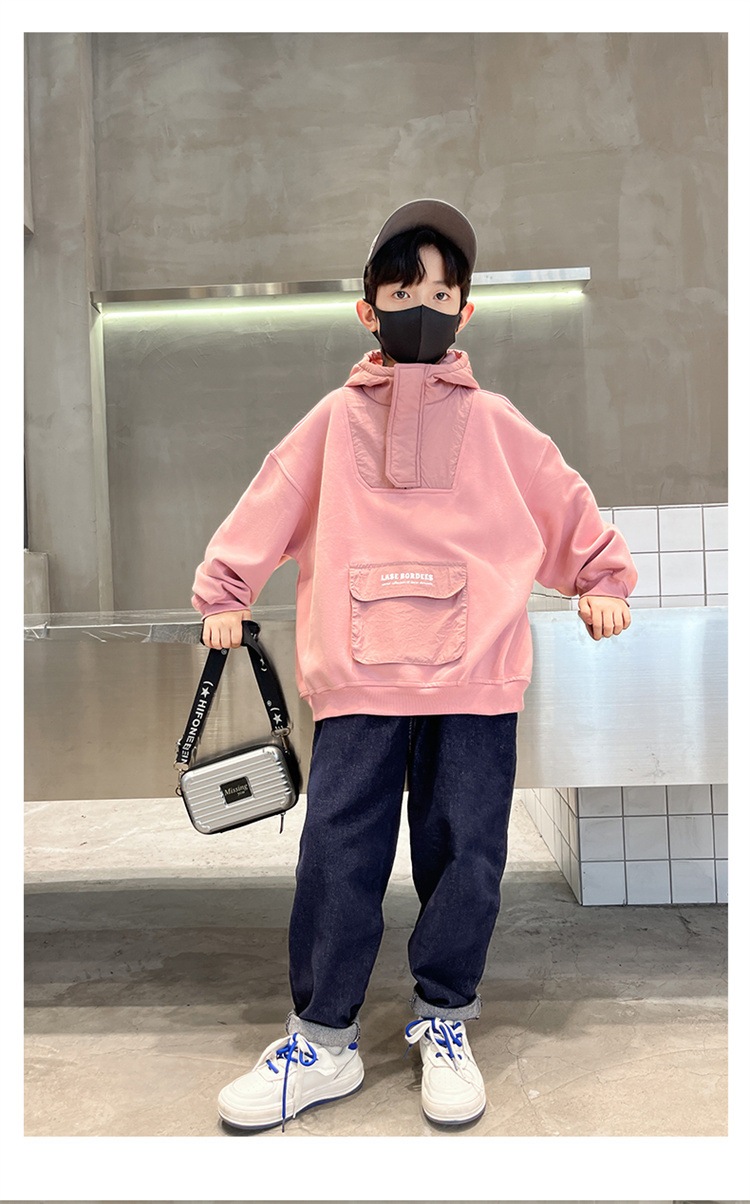 지리 아동복 남아 후드 풀오버 스웨트셔츠 2025 가을 신상 중대형 아동용 이너웨어 가을옷 자켓 상의