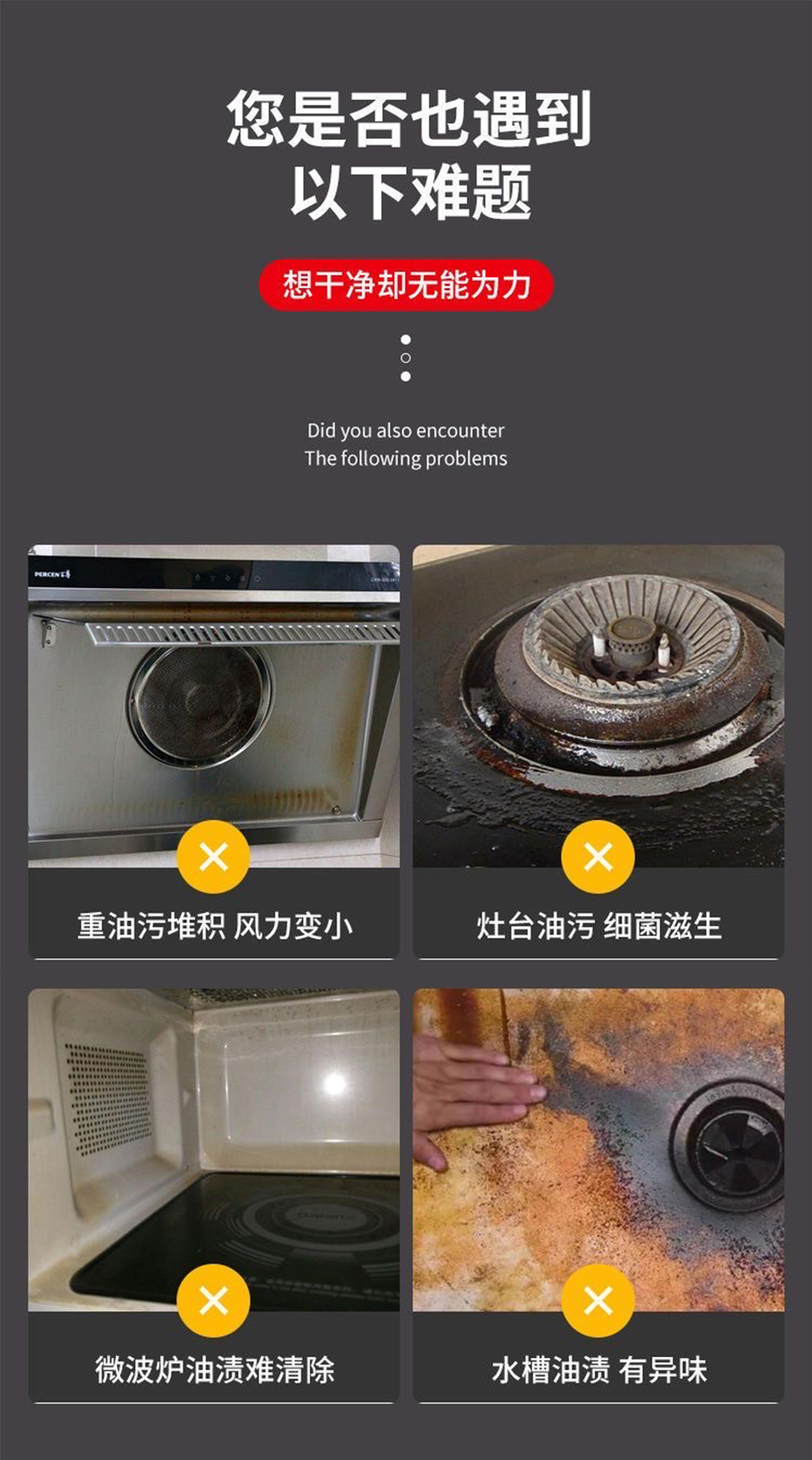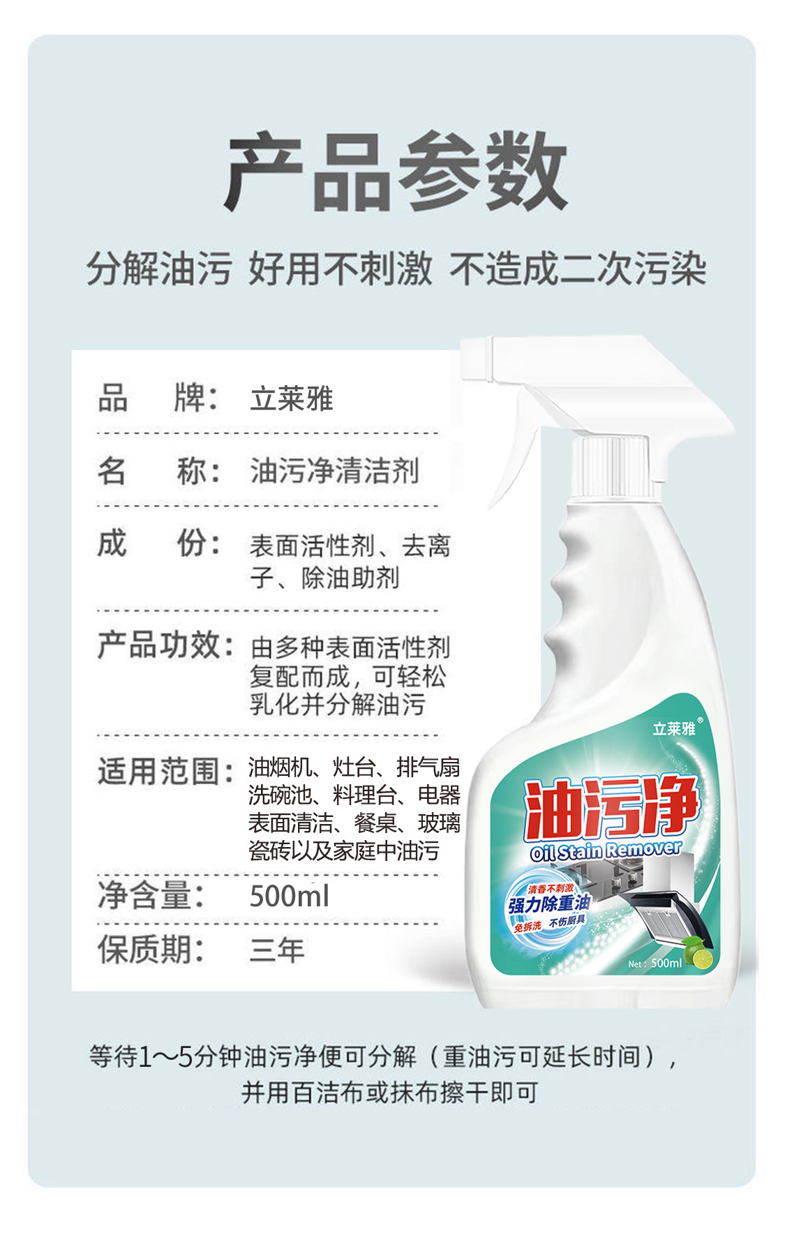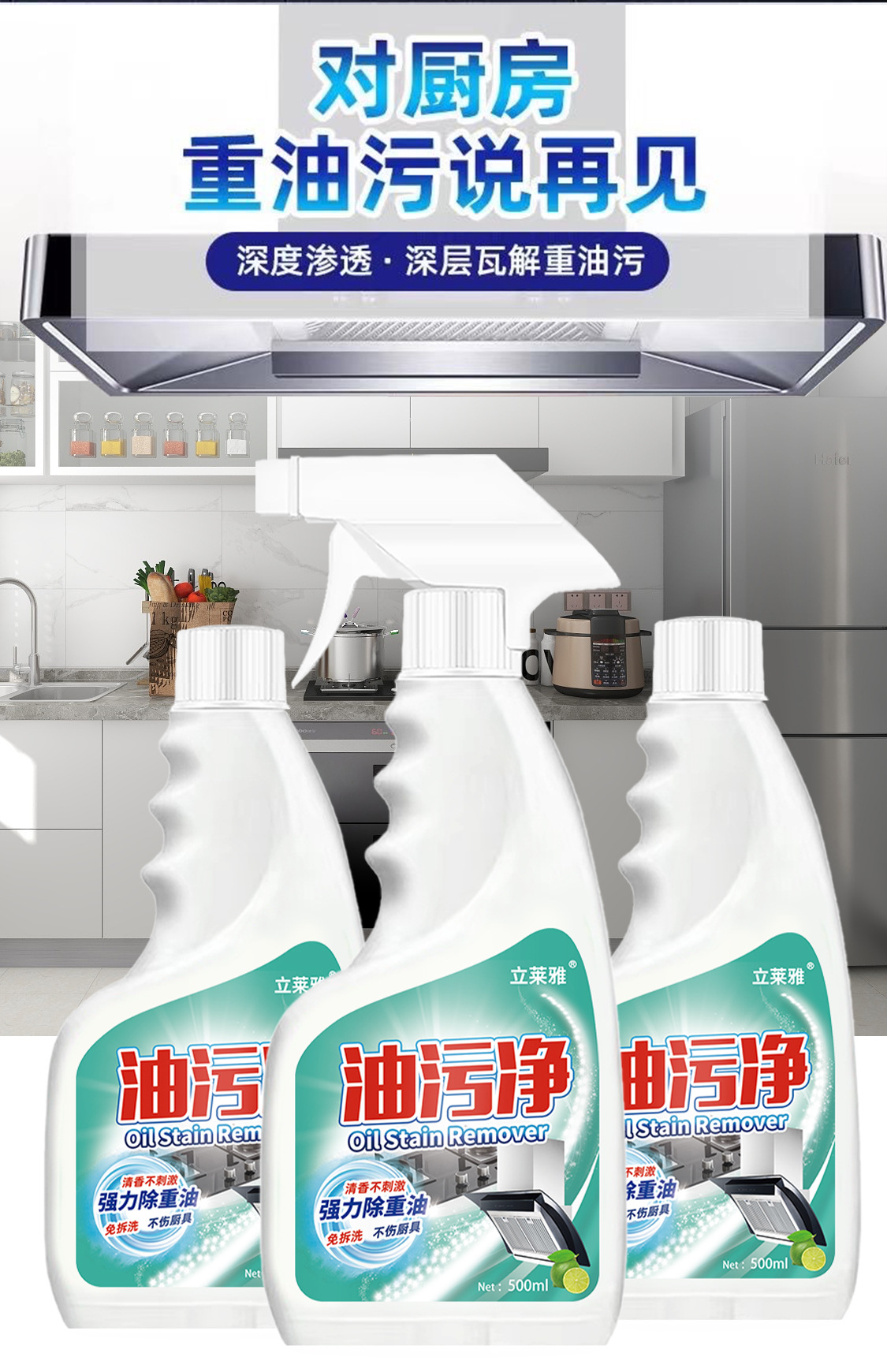 Lilaya 오일 얼룩 청소기 주방 무거운 오일 얼룩 청소기 범위 후드 가정용 청소기 범위 흄 클리너