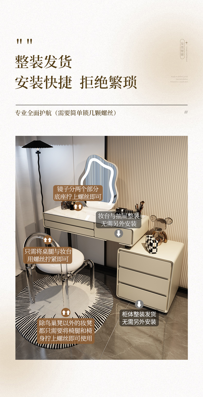 메이크업 모던 드레싱 통합 심플 라이트 스토리지 럭셔리 테이블 단단한 우드 크림 침실 캐비닛 버킷 스타일 매우 간단한 드레싱 테이블