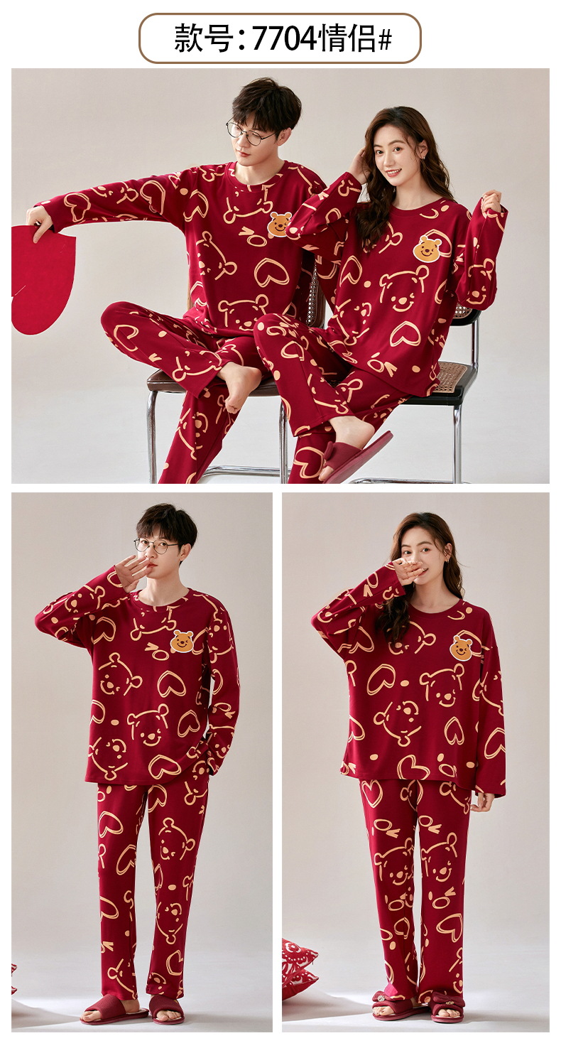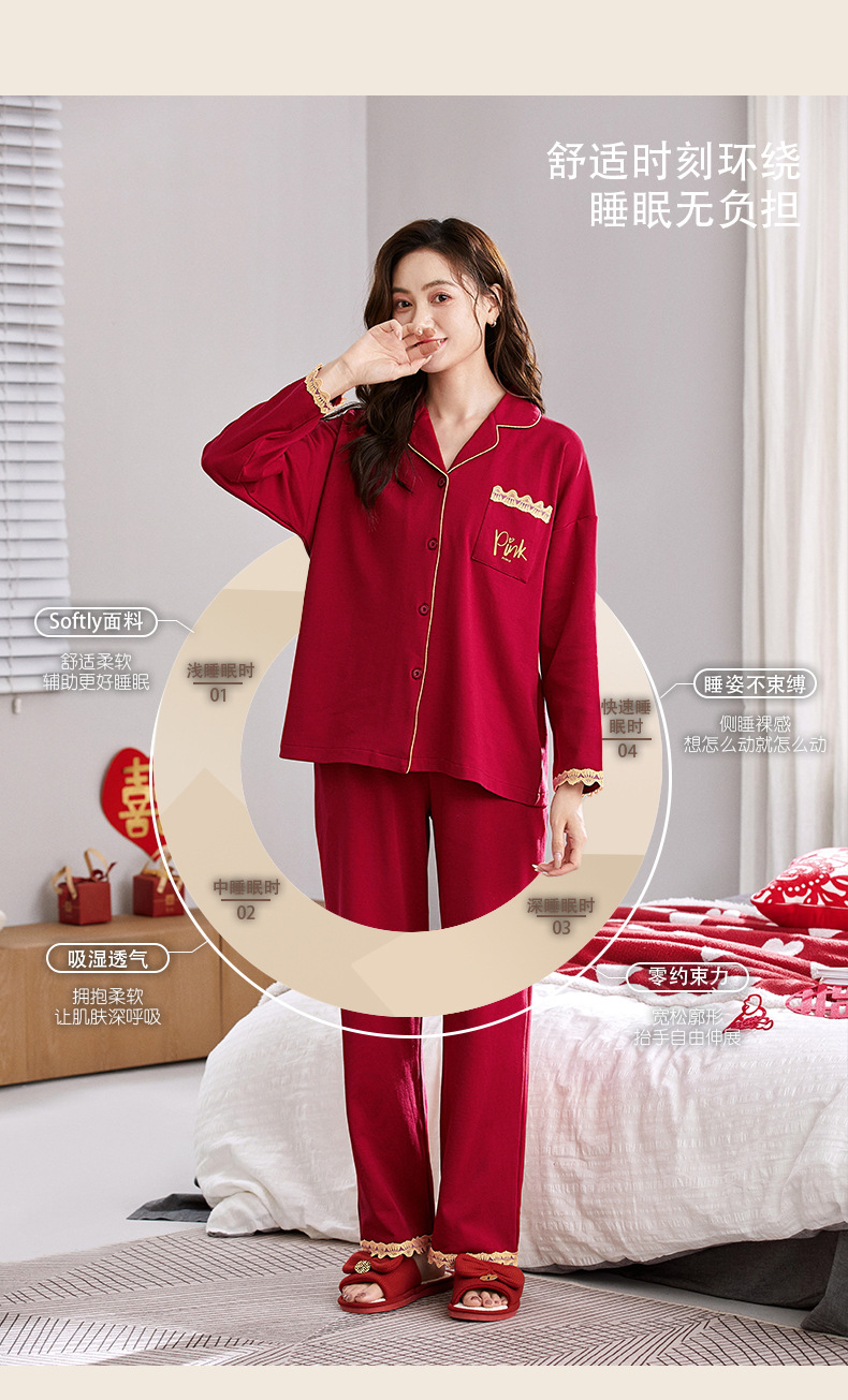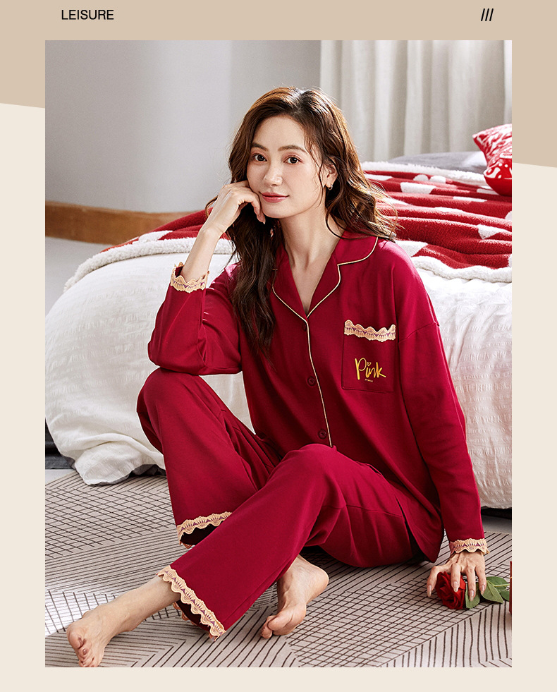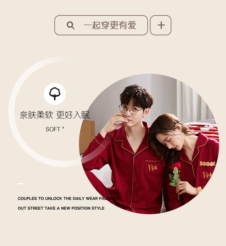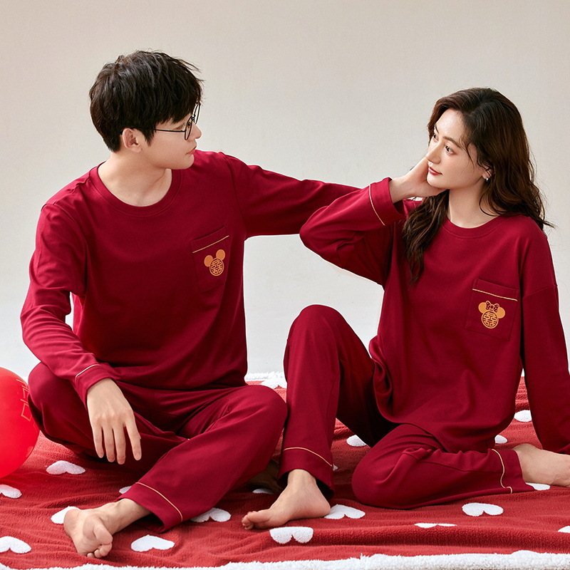큰 빨간 커플 잠옷 봄과 가을 면 결혼식 남자와 여자의 옷깃 세트 여름 긴 소매 생활 년 가정 옷스토어 가기