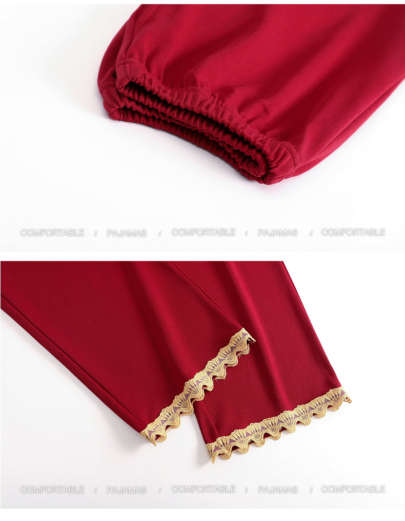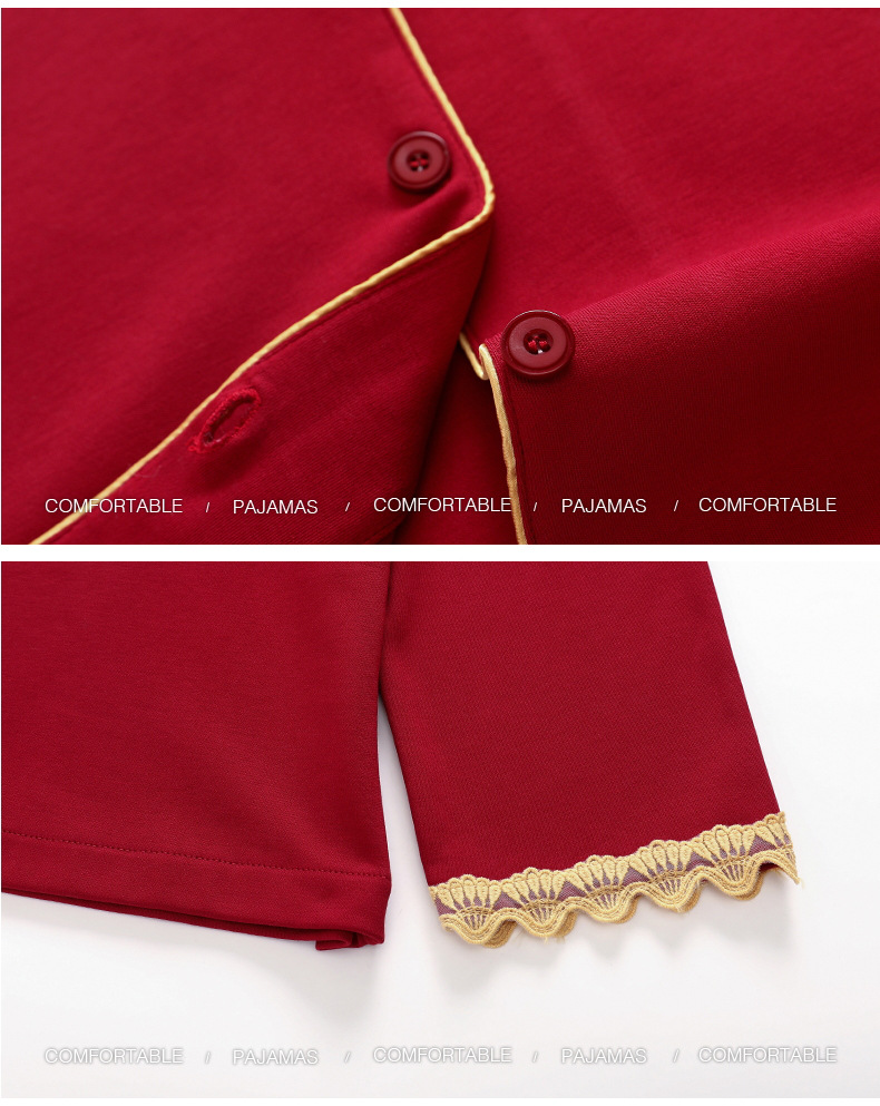 큰 빨간 커플 잠옷 봄과 가을 면 결혼식 남자와 여자의 옷깃 세트 여름 긴 소매 생활 년 가정 옷