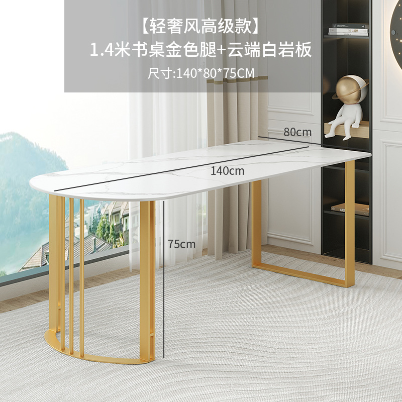 • [라이트 럭셔리] 1.4 m 데스크 골드 레그 + 클라우드 화이트 록 보드 140*80*75cm