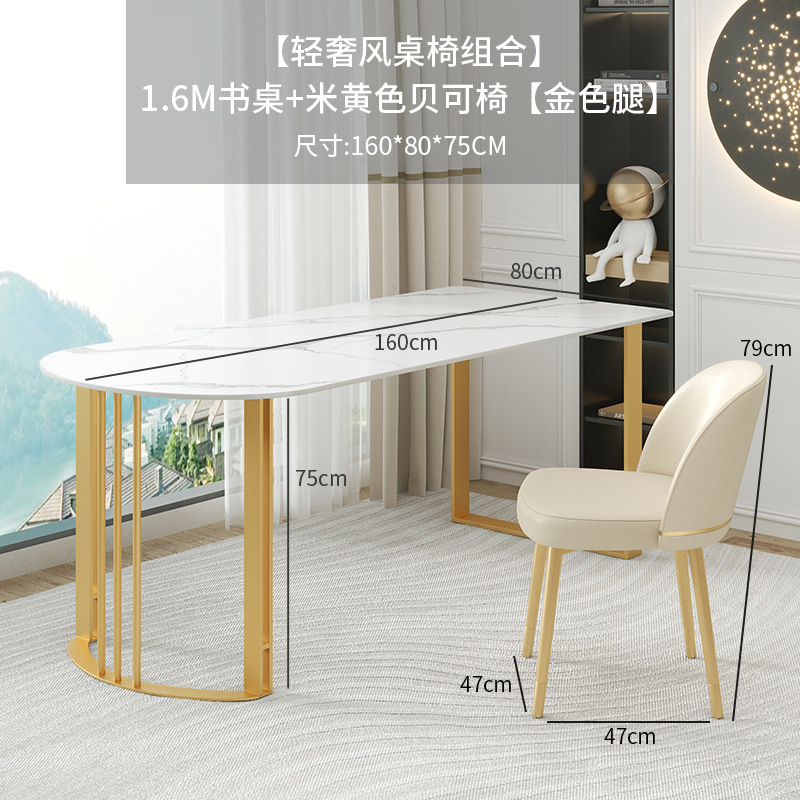• [라이트 럭셔리 테이블과 의자 조합] 1.6m 책상 + 아이보리 베이크 의자 [골든 레그]