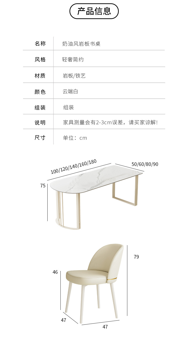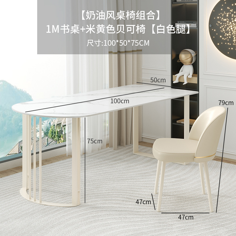 • [라이트 럭셔리] 1 m 데스크 골드 레그 + 클라우드 화이트 록 보드 100*50*75cm