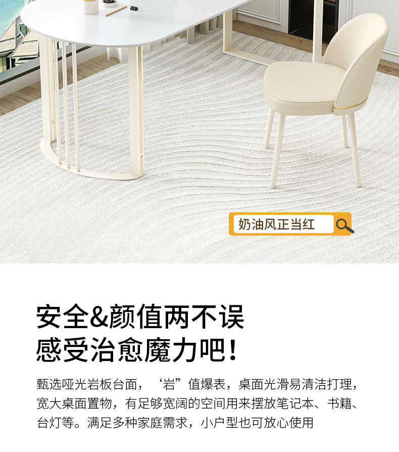 • [라이트 럭셔리 테이블과 의자 조합] 1.8m 책상 + 아이보리 베코 의자 [골든 레그]