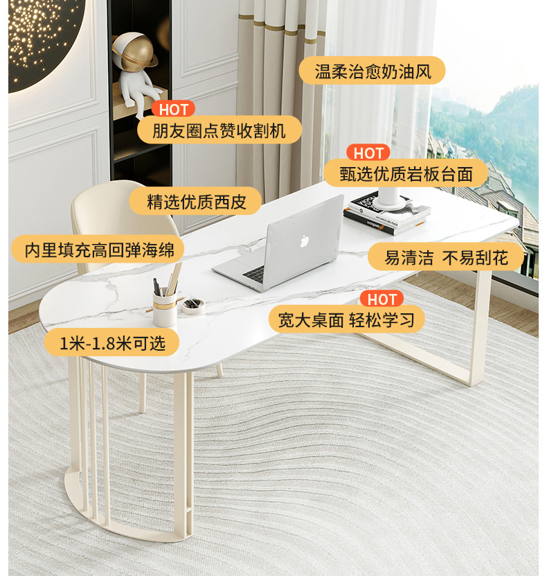 • [라이트 럭셔리] 1.8 m 데스크 골드 레그 + 클라우드 화이트 록 보드 180*90*75cm