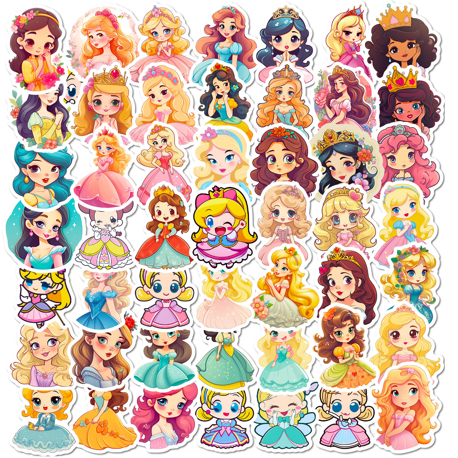 50 매 만화 치마 소녀 공주 스티커 유치원 어린이 장난감 낙서 소녀 아름다운 공주 스티커스토어 가기
