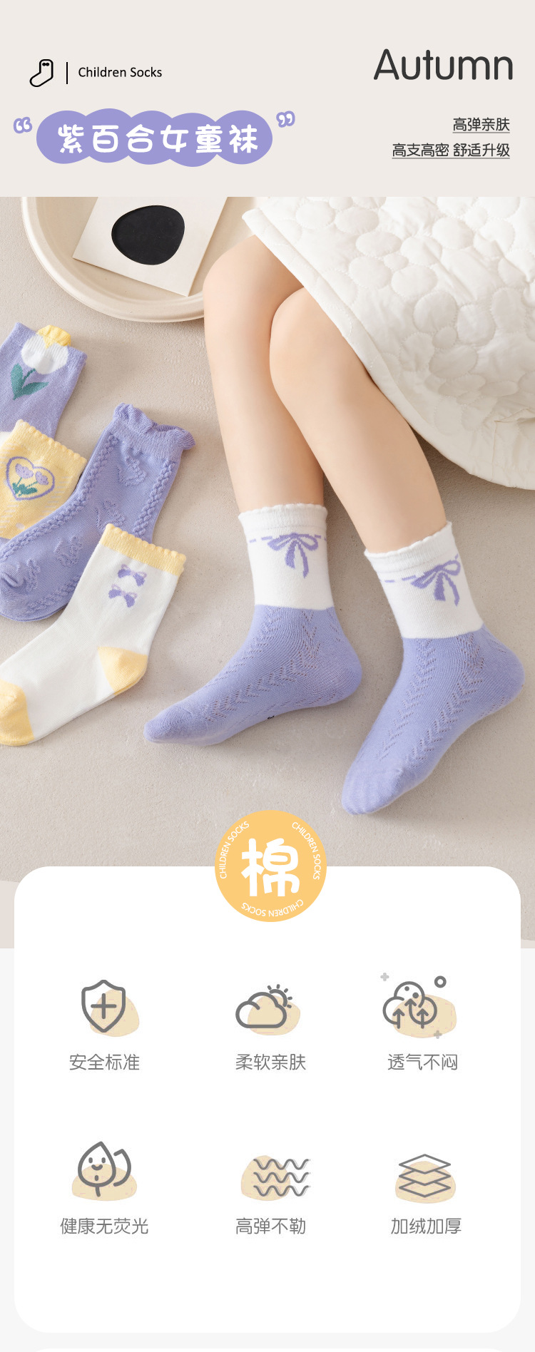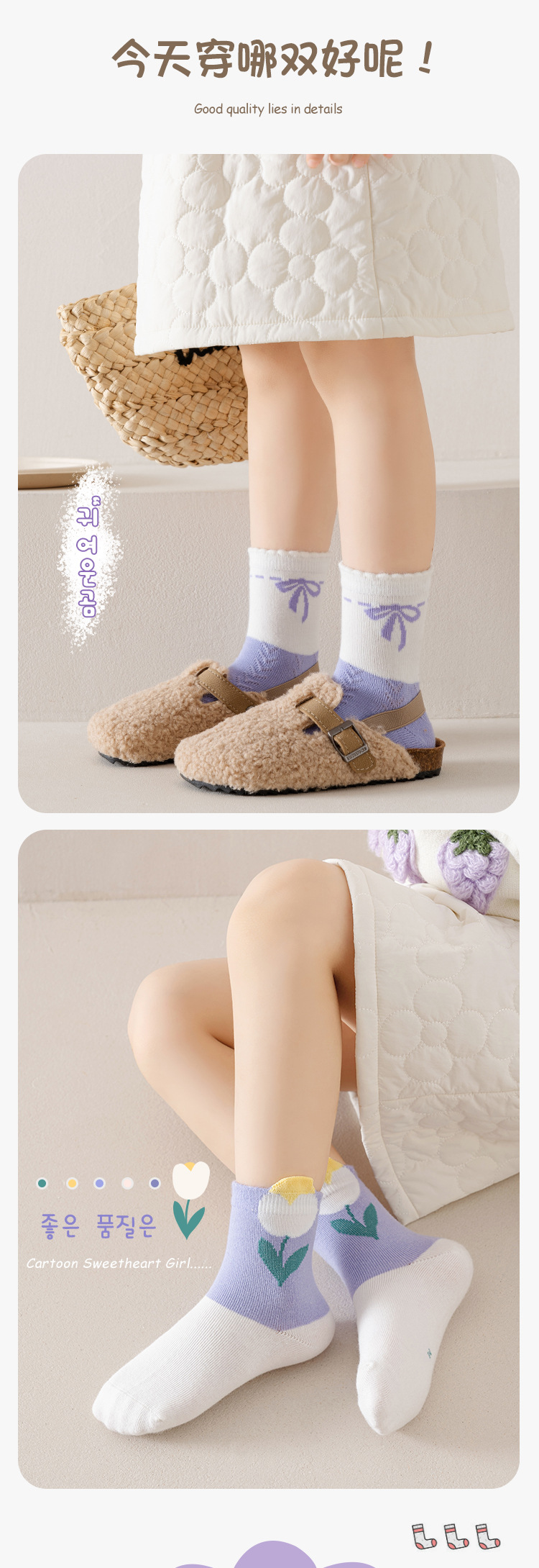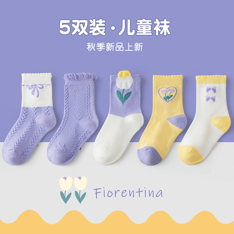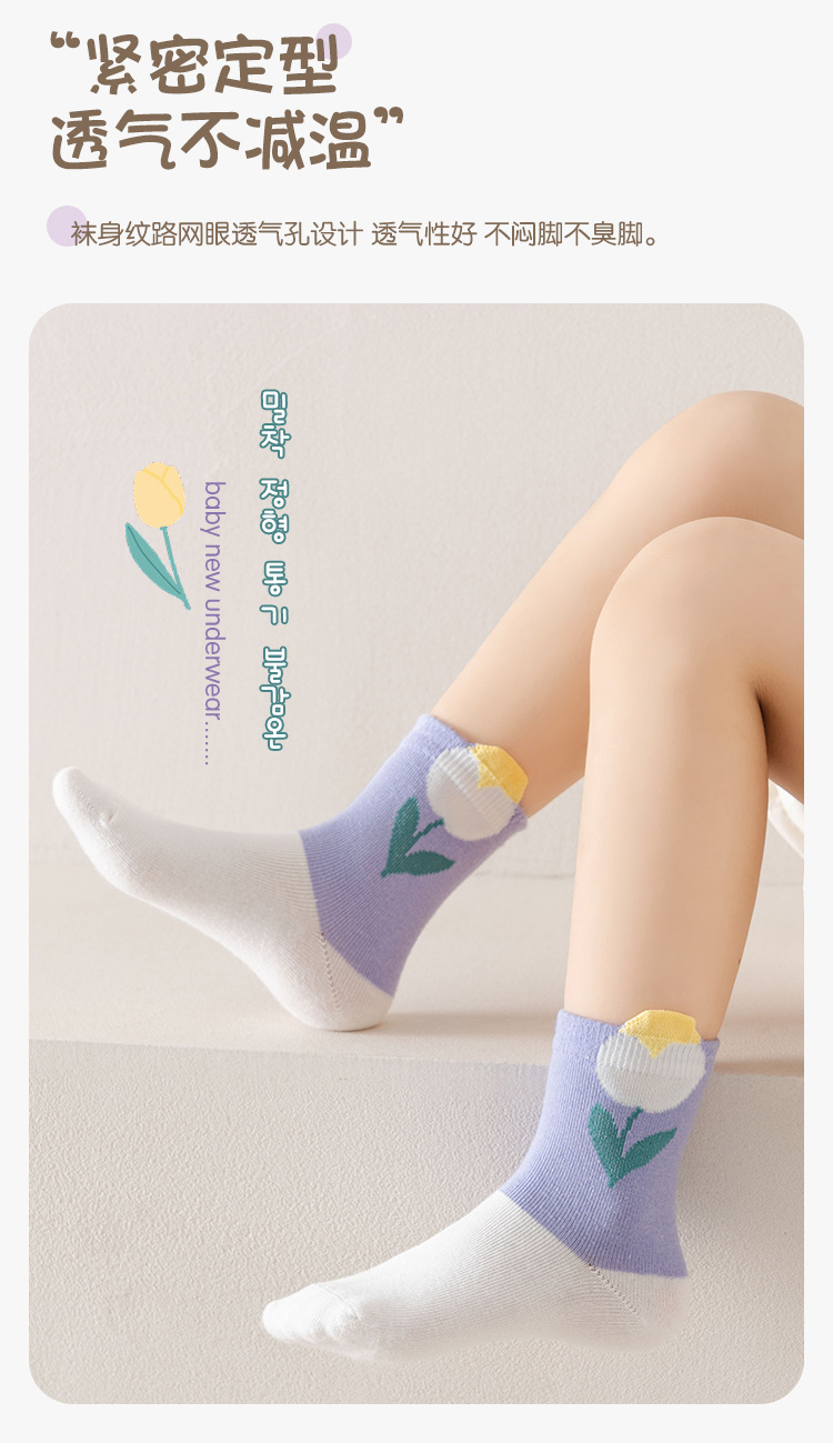 어린이 양말 면 달콤한 백합 중간 길이 양말 어린이용 양말 가을 신상 아기 양말 편안한 여자아이 양말
