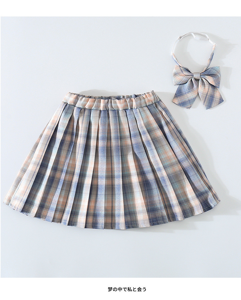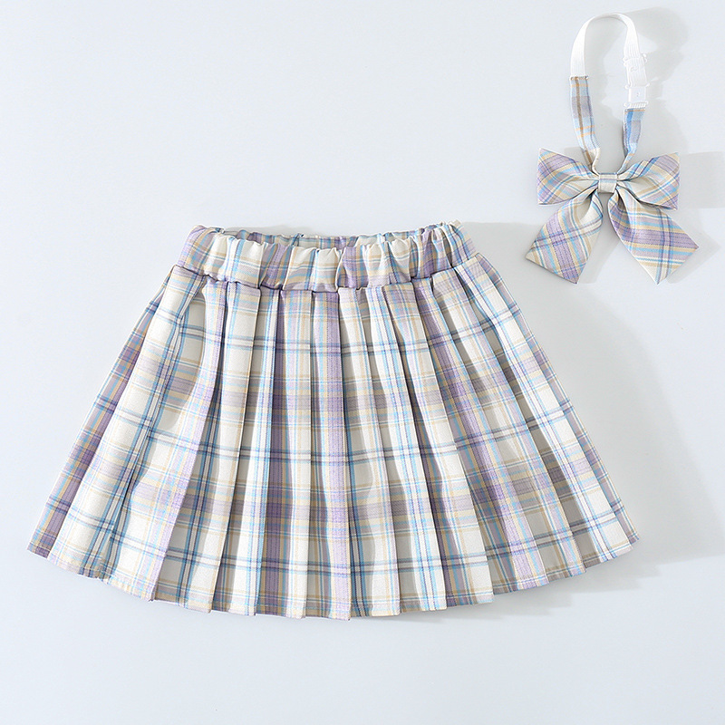 2025 새로운 여자 정품 jk 의류 격자 무늬 스커트 어린이 봄 대학 스타일 주름 치마 봄 스커트 여름 짧은 치마