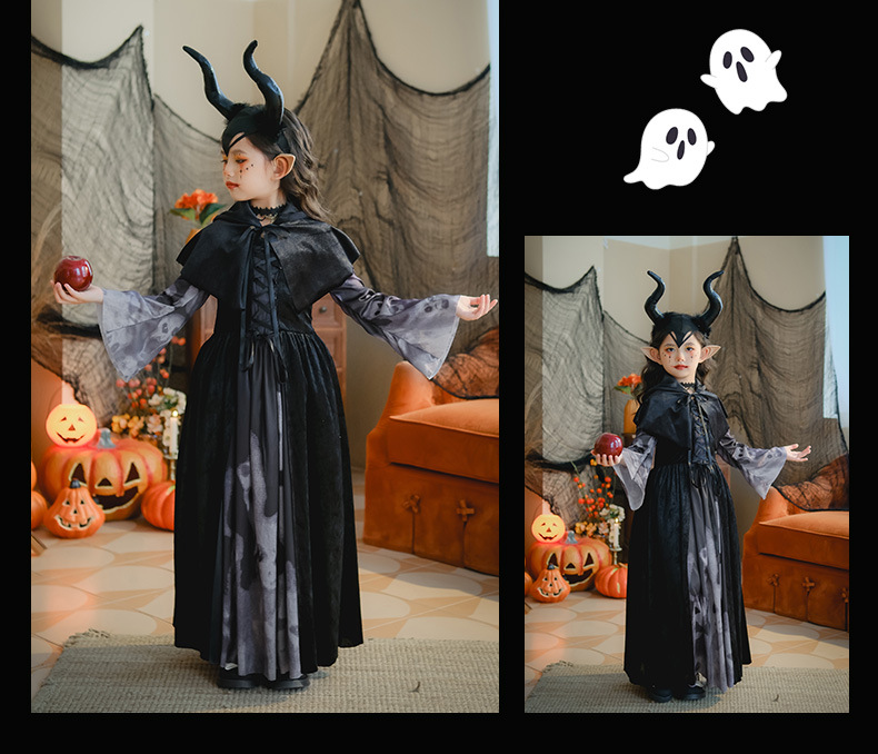 2025년 할로윈 어린이 의상 공연복 해골 어린이복 여아 롱 드레스 마녀 뱀파이어 재미있는 드레스