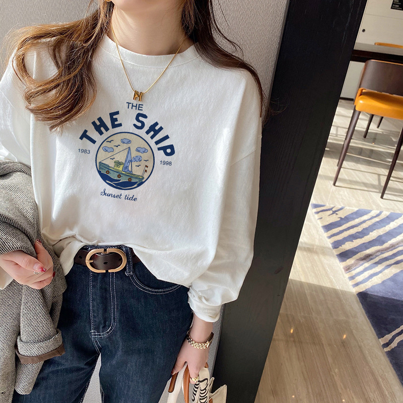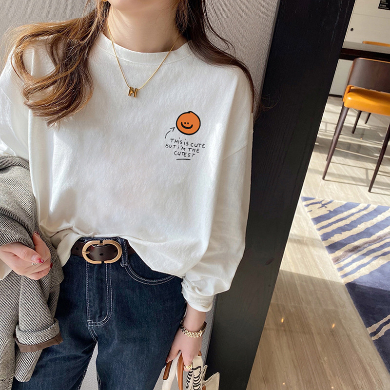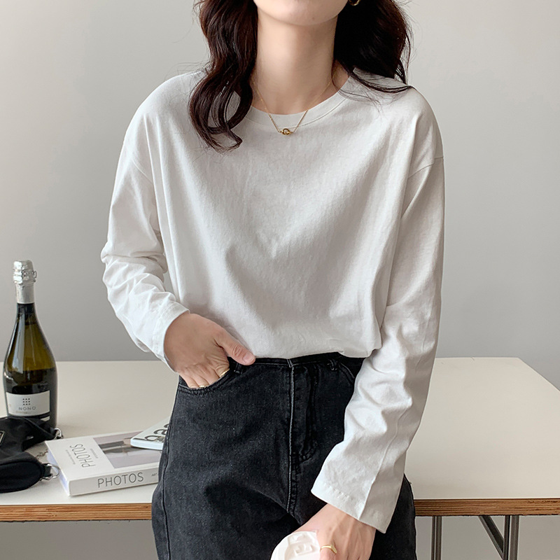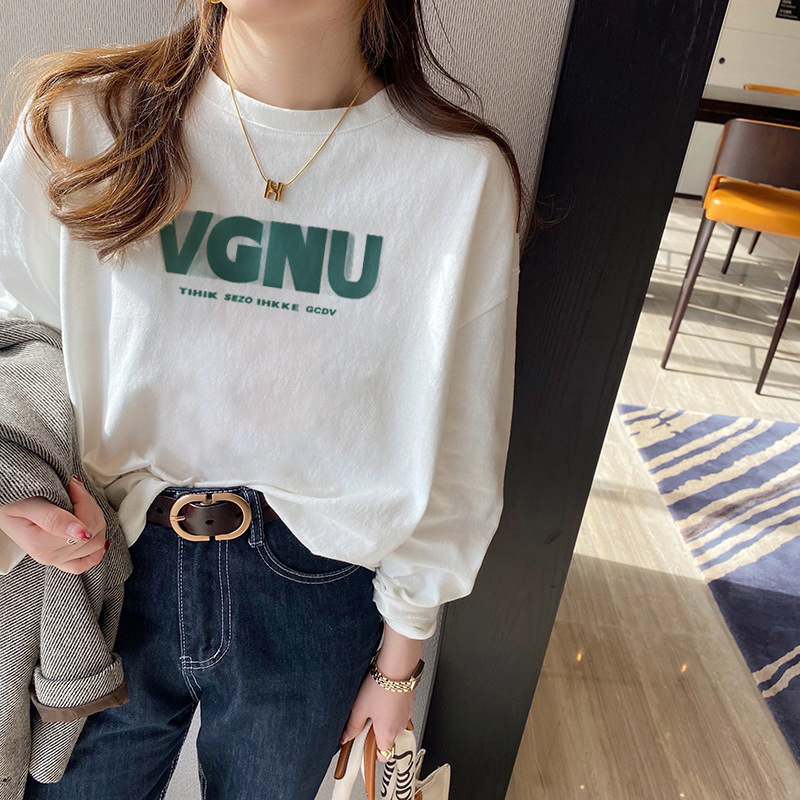 흰색 긴팔 티셔츠 여성용 면 느슨한 이른 가을 2023 새로운 내부 라운드 넥 베이스 셔츠 가을과 겨울 레터 탑스토어 가기