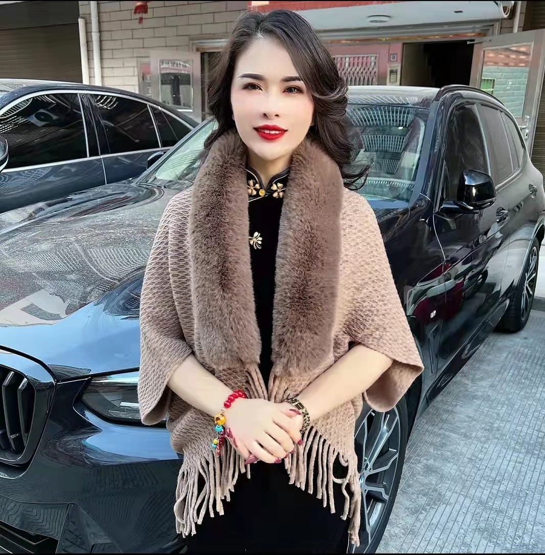 가을과 겨울 새로운 두꺼운 겉옷 하이 패션 모피 칼라 숄 겉옷 따뜻한 중년 겨울 숄 코트 조수스토어 가기