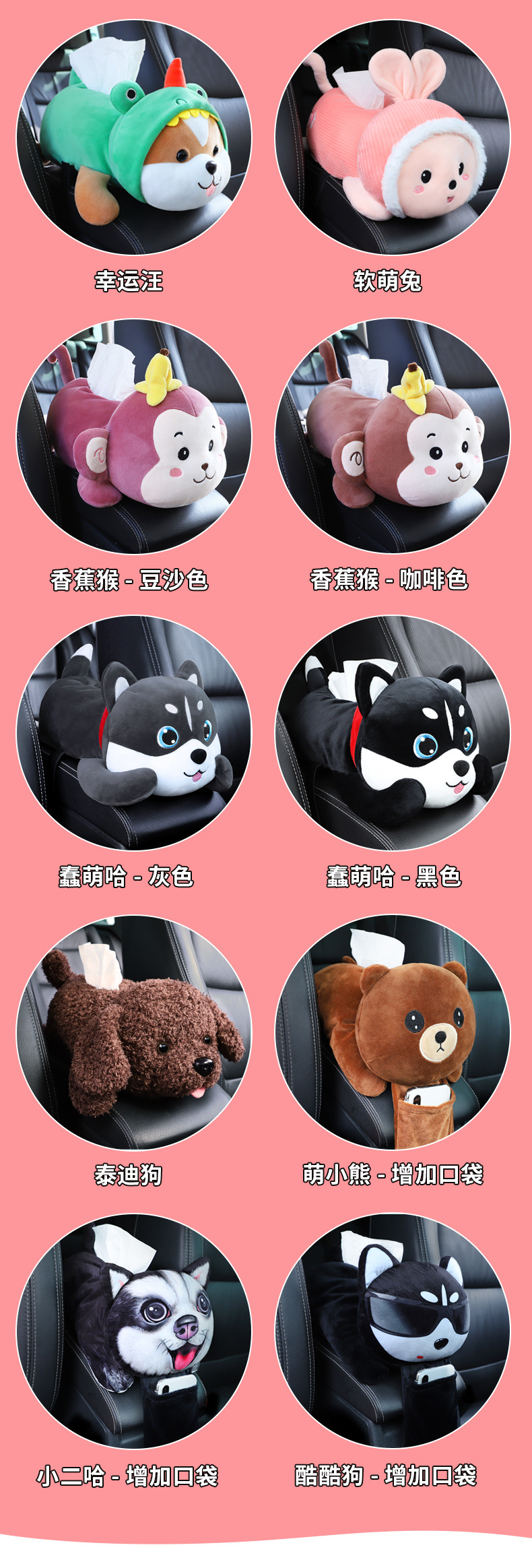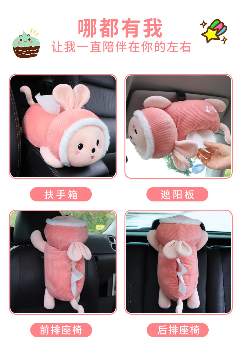 귀여운 자동차 티슈 박스 팔걸이 매달려 창조적 인 만화 자동차 종이 상자 여성을위한 자동차 장식 용품
