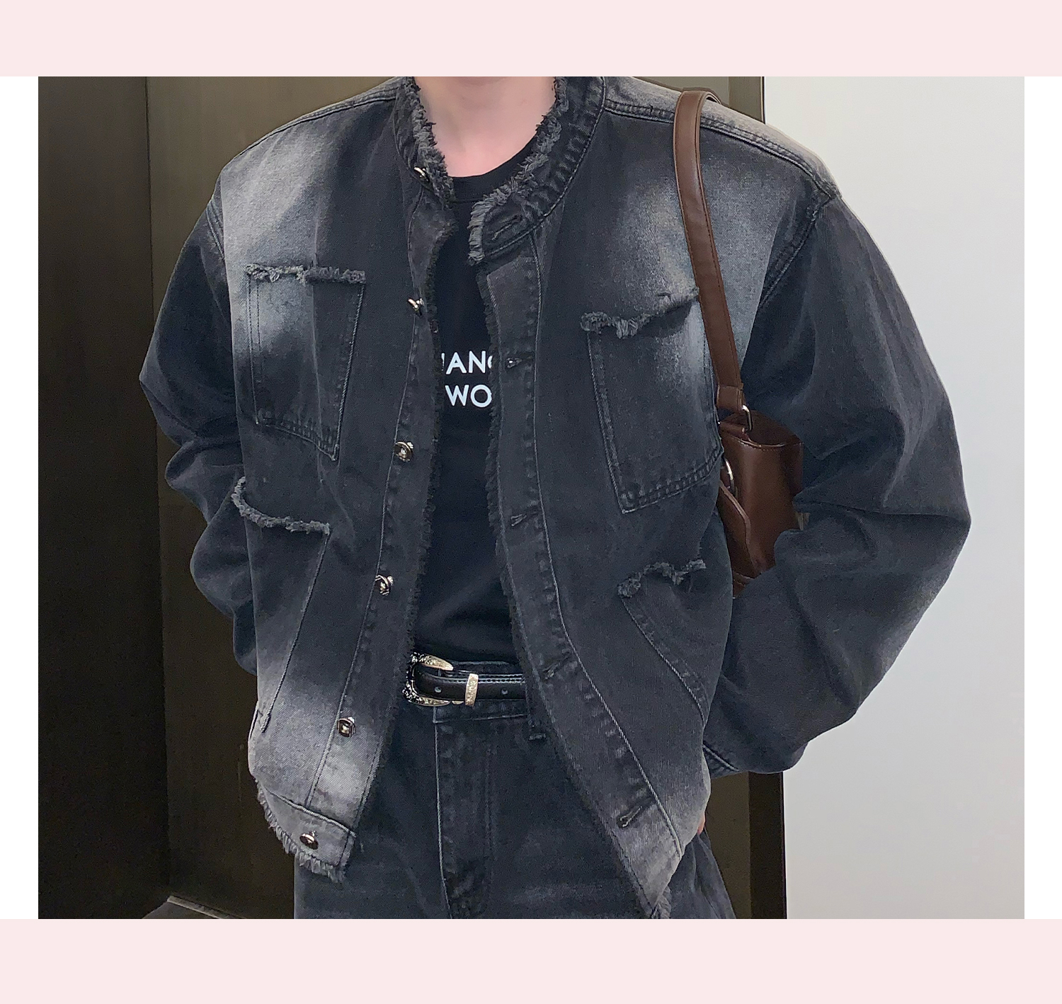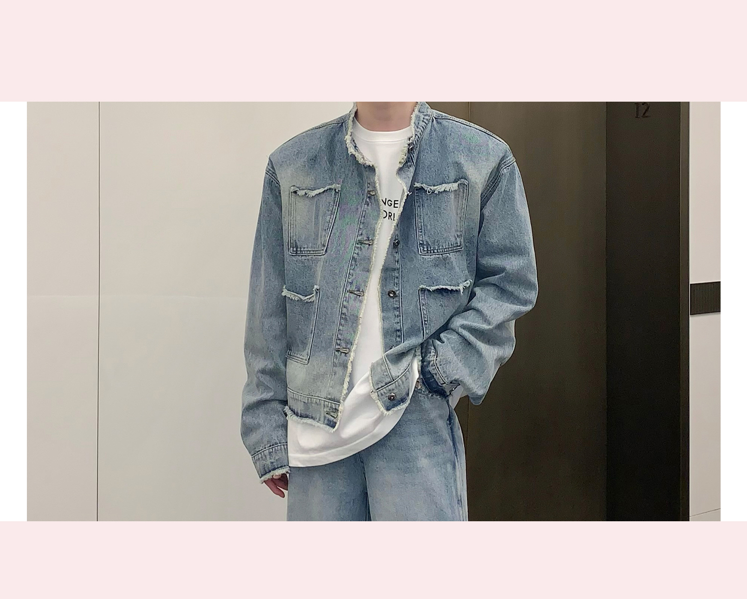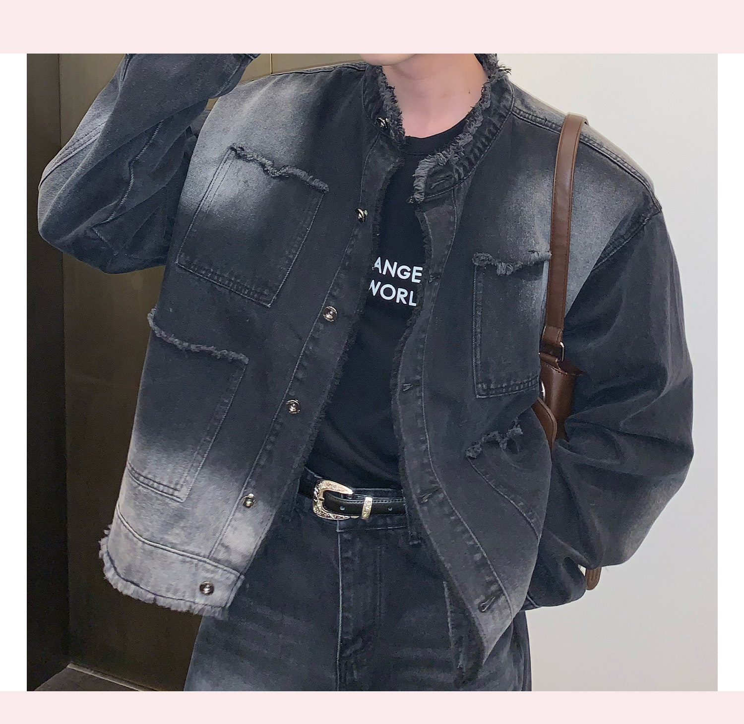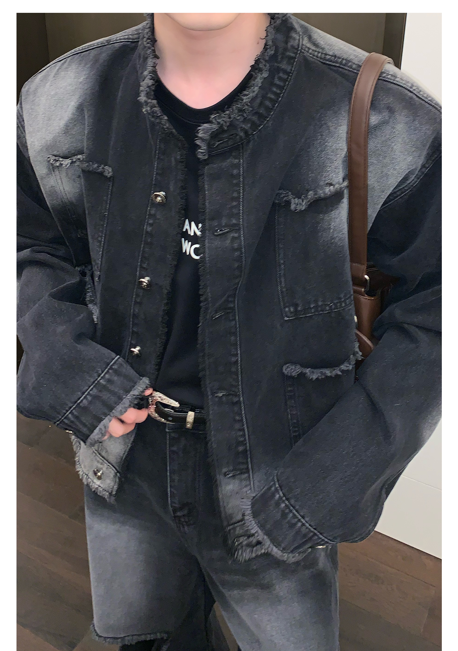 고민 러플 트렌디 브랜드 하이 스트리트 데님 재킷 남자의 느슨한 틈새 디자인 캐주얼 씻어 빈티지 그라디언트 재킷스토어 가기