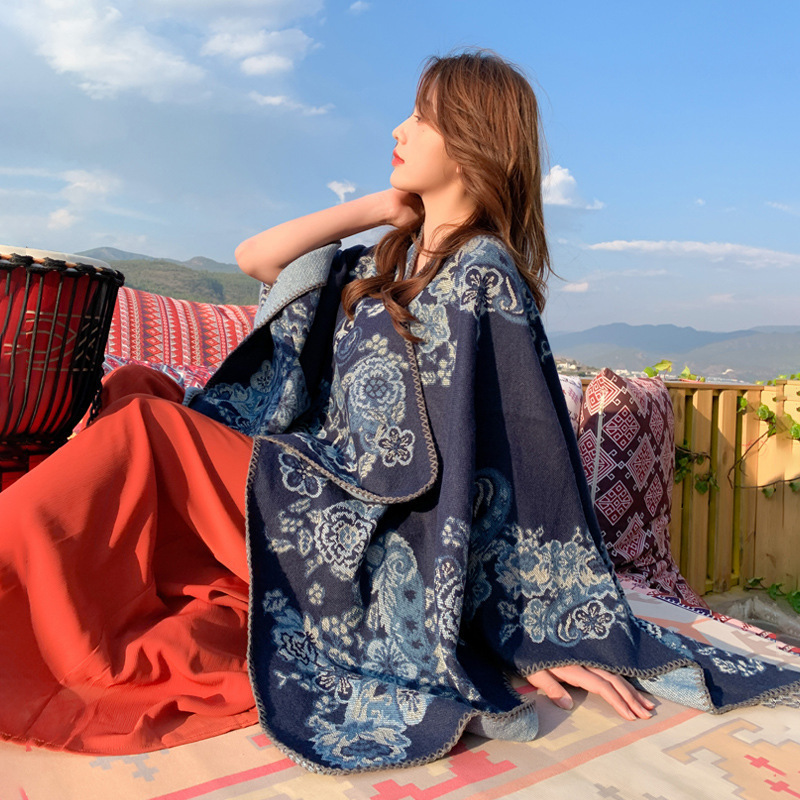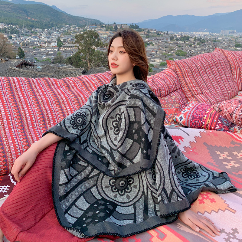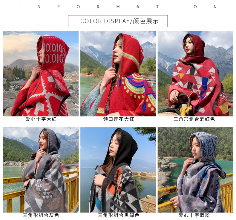 가을과 겨울 새로운면과 린넨 망토 따뜻한 목도리 야외 여행 Lijiang 사진 망토 두꺼운 따뜻한 빨강스토어 가기