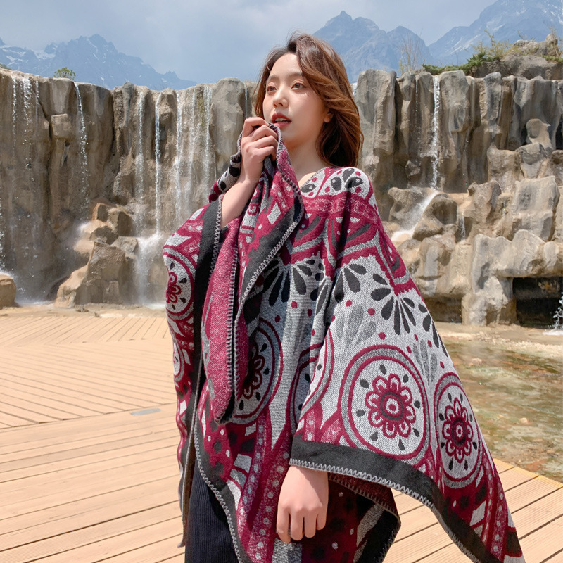 가을과 겨울 새로운면과 린넨 망토 따뜻한 목도리 야외 여행 Lijiang 사진 망토 두꺼운 따뜻한 빨강