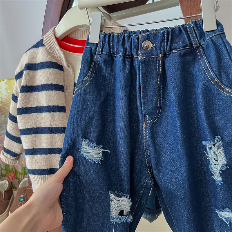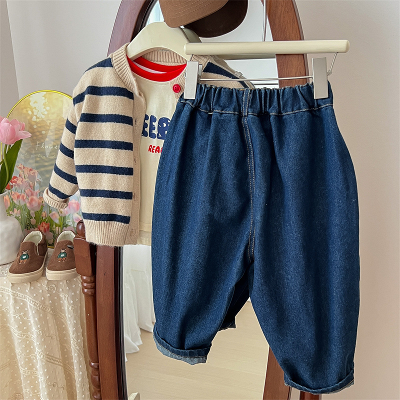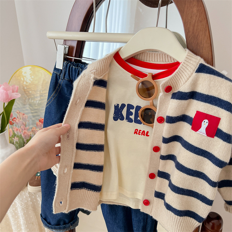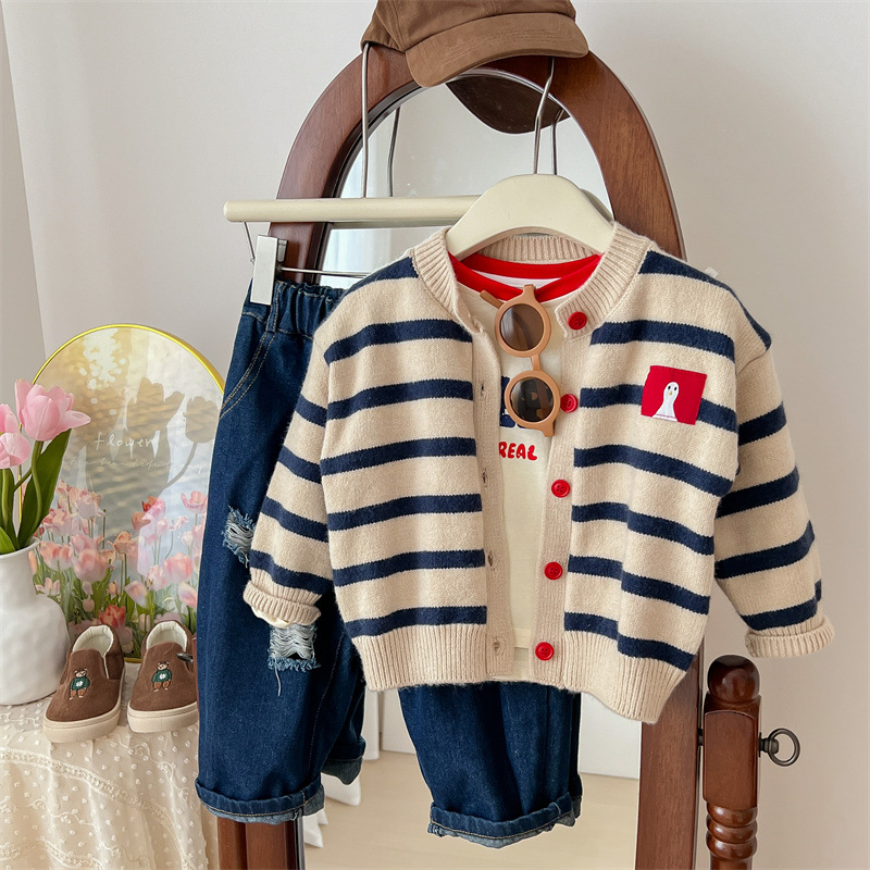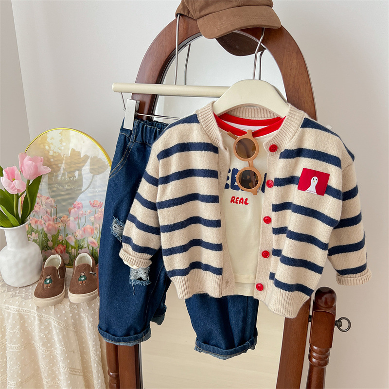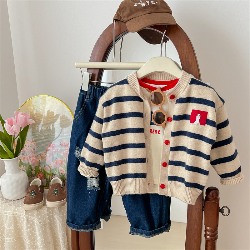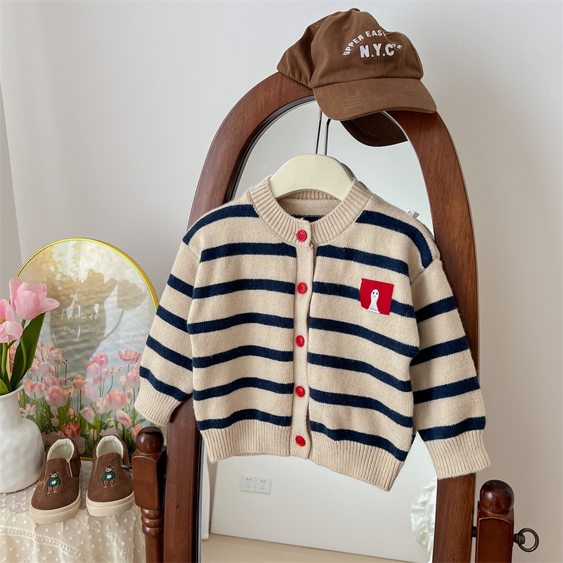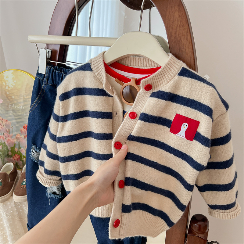 Ningli 소녀 니트 카디건 가을 가을 새로운 중소 어린이 아기 외국 스타일 스트라이프 스웨터 탑 코트