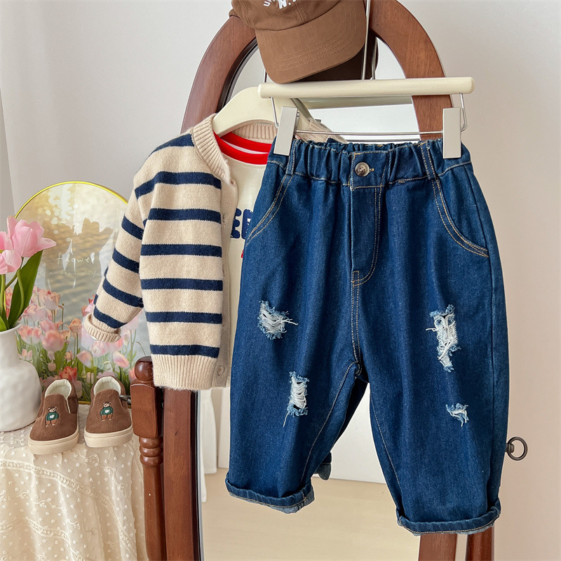 Ningli 소녀 니트 카디건 가을 가을 새로운 중소 어린이 아기 외국 스타일 스트라이프 스웨터 탑 코트스토어 가기