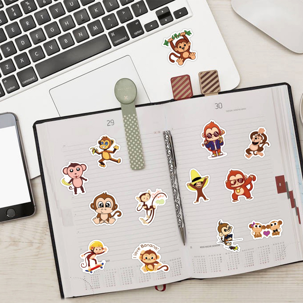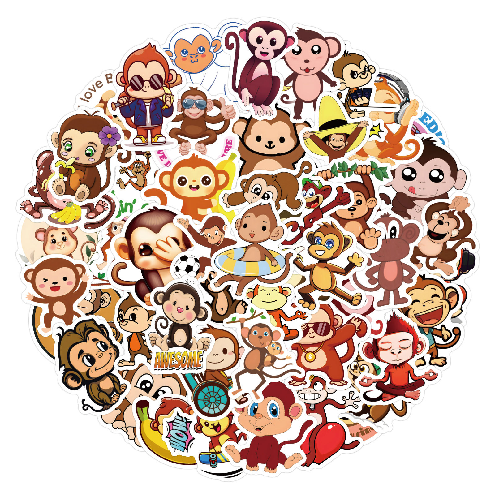 60 매 만화 원숭이 낙서 스티커 만화 동물 스티커 어린이 DIY 스케이트 보드 수하물 방수 스티커스토어 가기