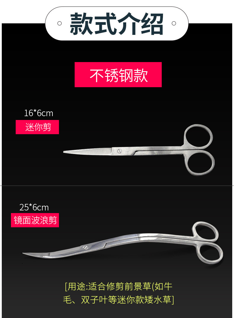 스테인레스 스틸 가위 도구 물 잔디 어항 가위 가위 직선 전단 곡선 전단 파 전단 전문 잔디 탱크 도구 도매