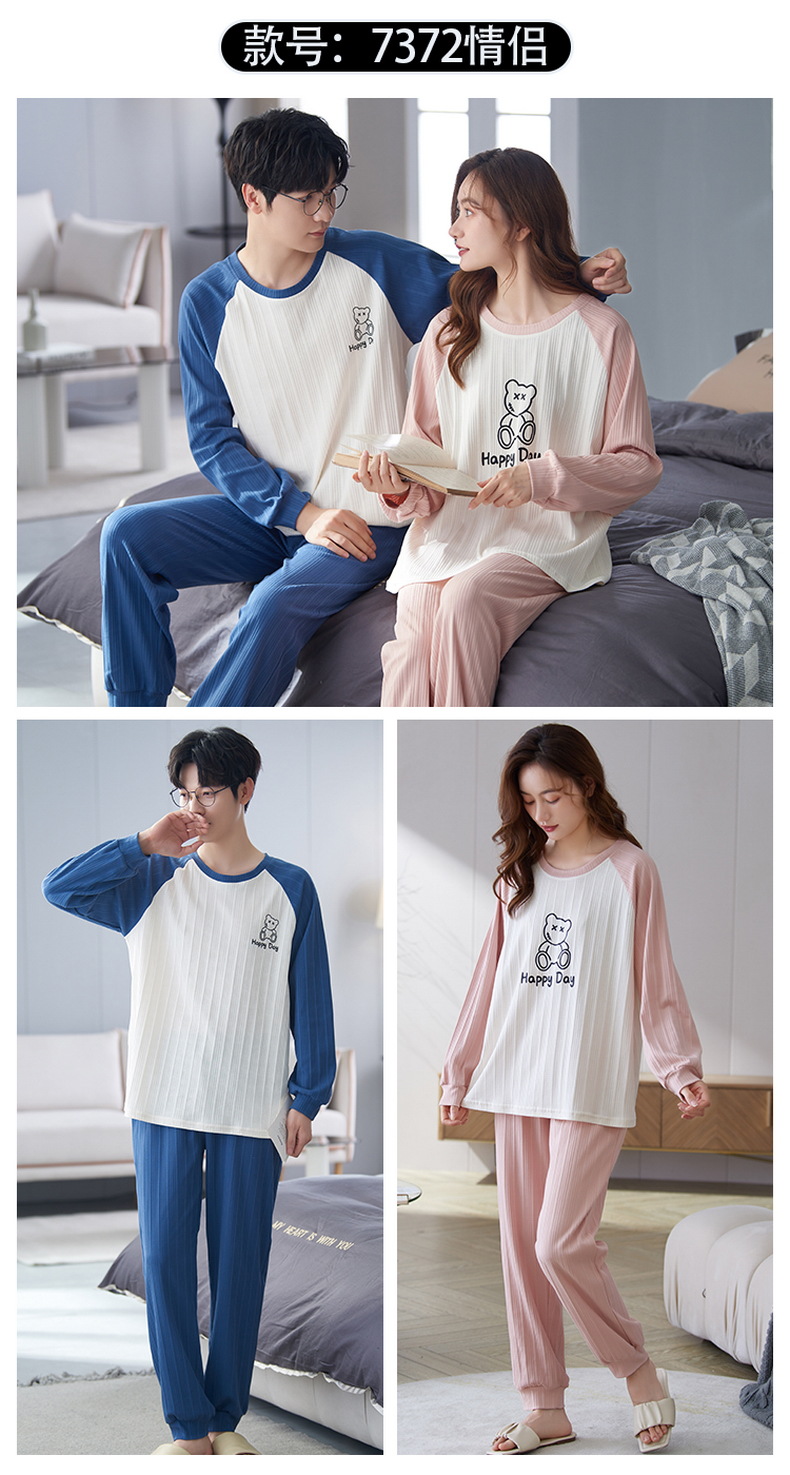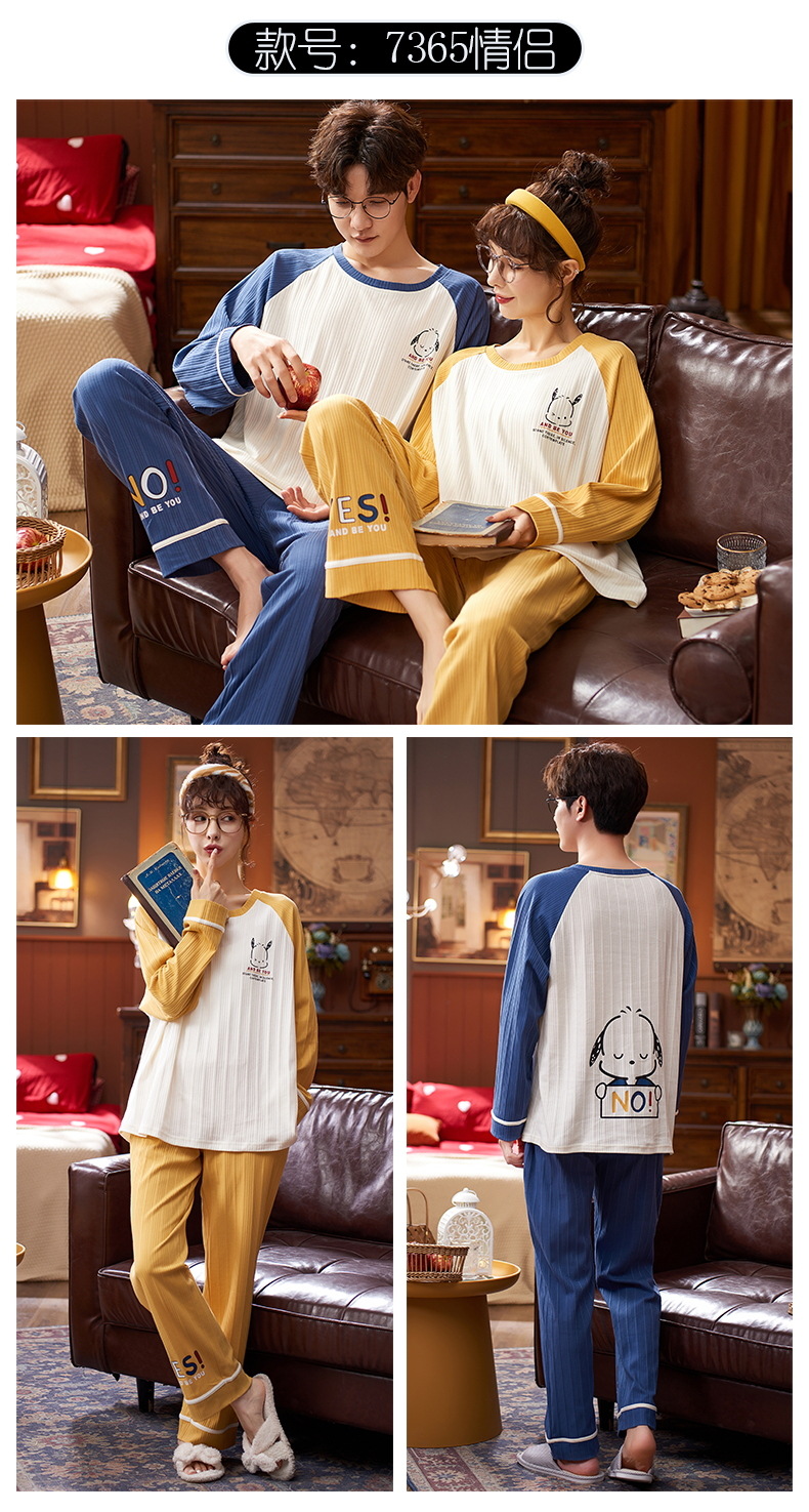 한국 스타일 커플 잠옷 여자의 봄과 가을 긴 소매 면 새로운 만화 캐주얼 남자의 가을과 겨울 가정 의류 세트스토어 가기