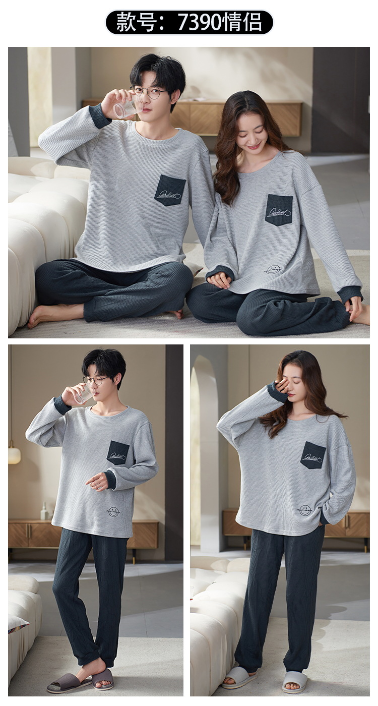 한국 스타일 커플 잠옷 여자의 봄과 가을 긴 소매 면 새로운 만화 캐주얼 남자의 가을과 겨울 가정 의류 세트