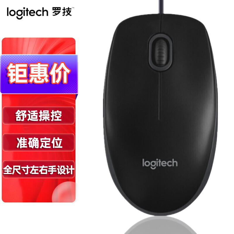 유선 USB Logitech B100 엔터프라이즈 마우스 사무실 마우스 대칭 마우스 컴퓨터 범용스토어 가기