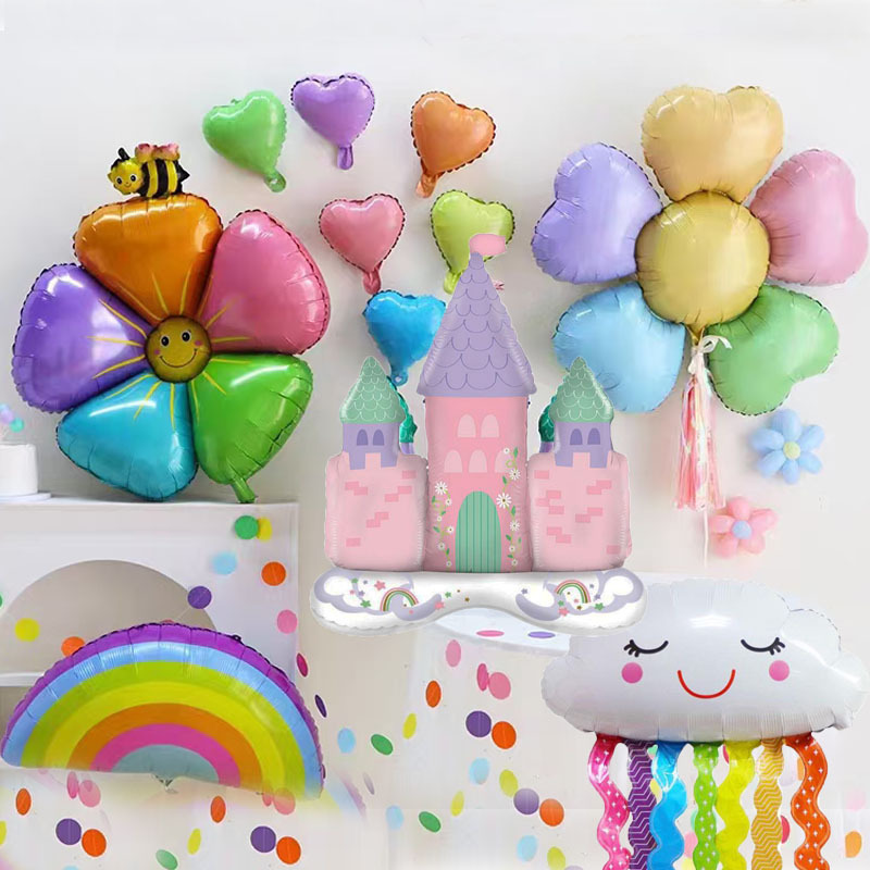 대형 알루미늄 필름 풍선 다채로운 스마일 다섯 꽃잎 꽃 꿀벌 스마일 다섯 꽃잎 꽃 사랑 다섯 꽃잎 꽃 케이크 성스토어 가기