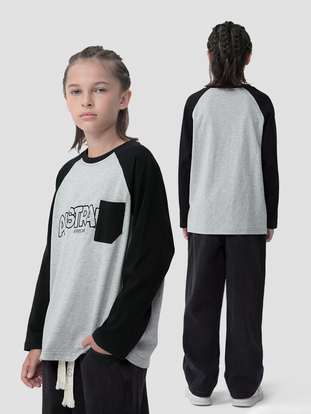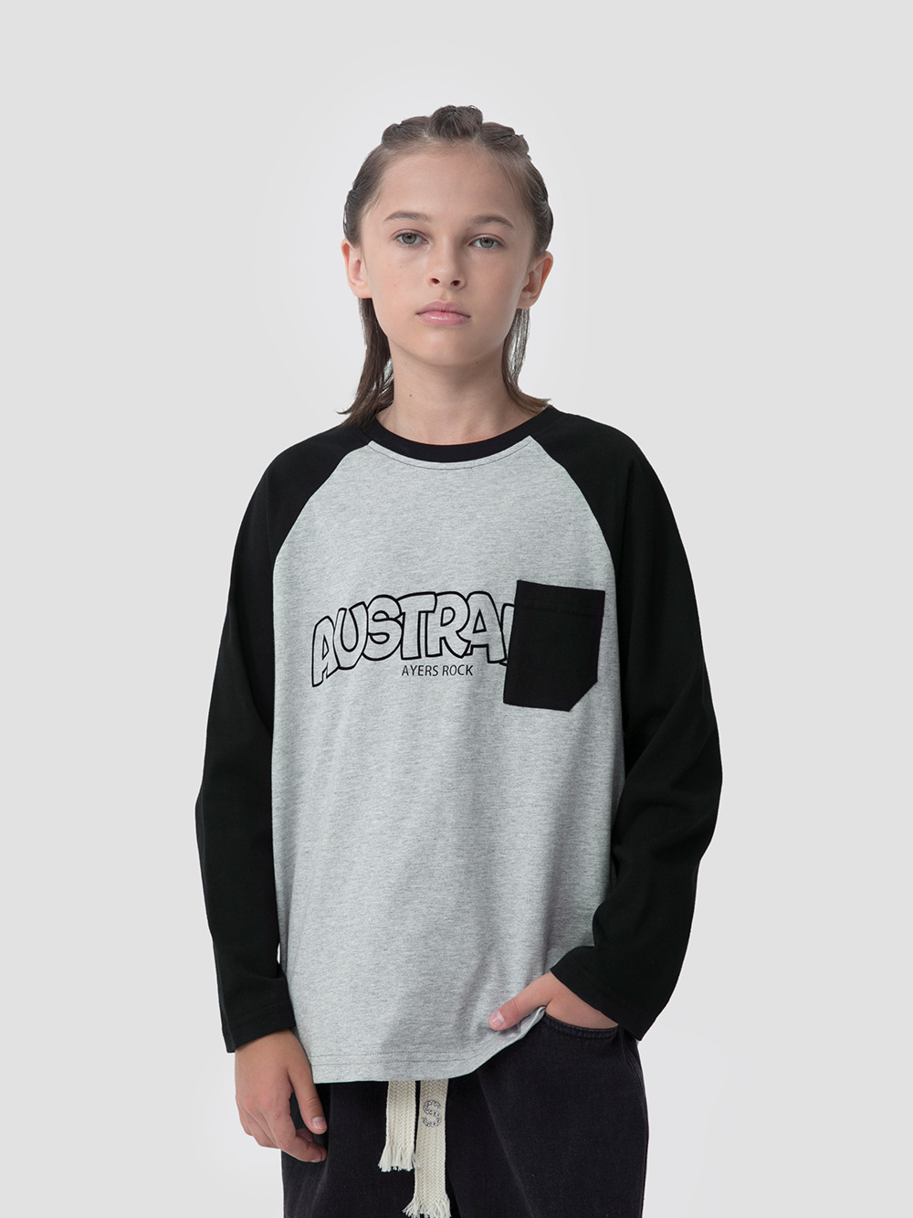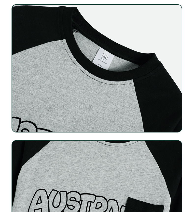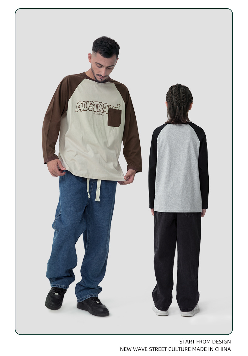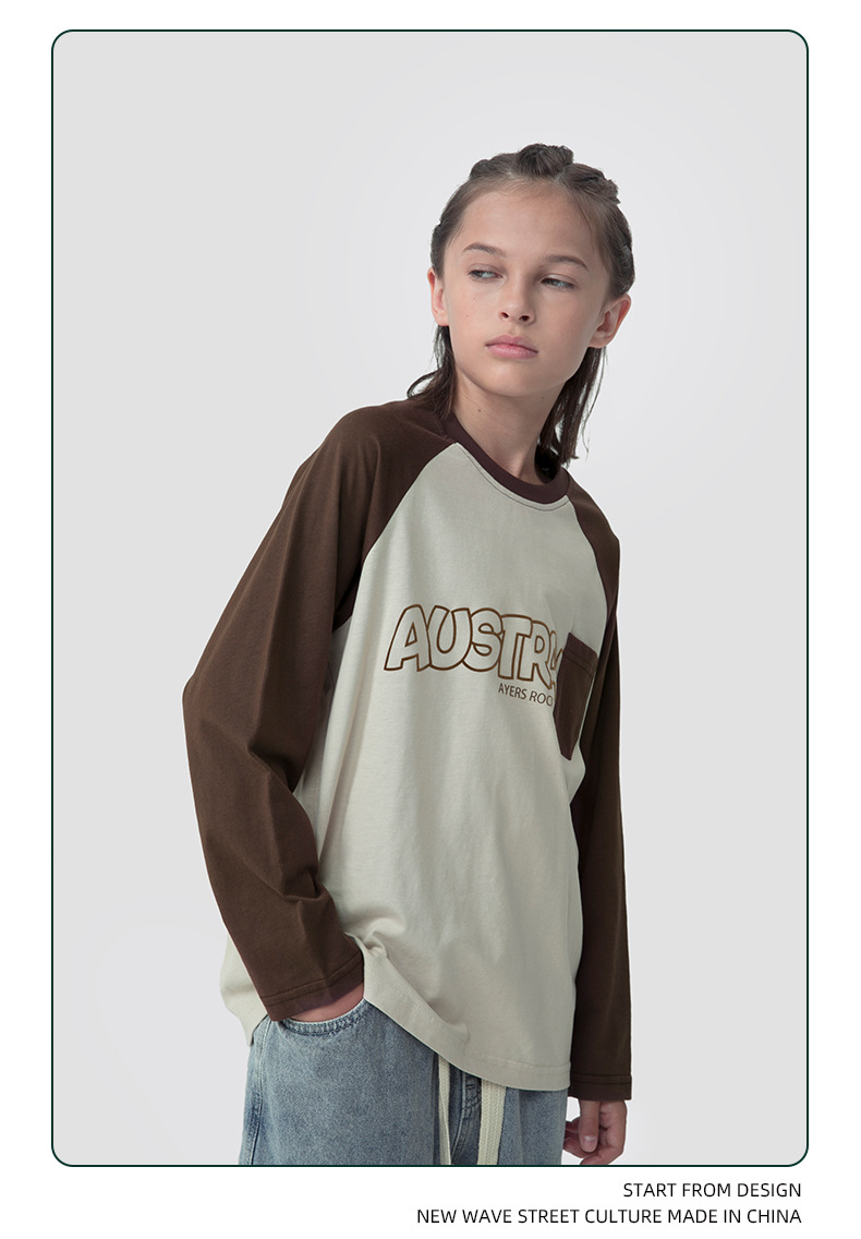 MT 아동복 일본식 레트로 컬러 매칭 패치 백 대형 아동 패션 브랜드 탑용 남아 어깨끈 순면 긴팔 티셔츠스토어 가기