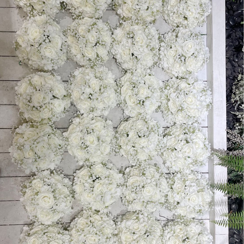 国外客户定制80cm白色满天星玫瑰花球 主要采用的花是白色满天星和白色玫瑰花搭配 其他尺寸可以定制,欢迎咨询客服