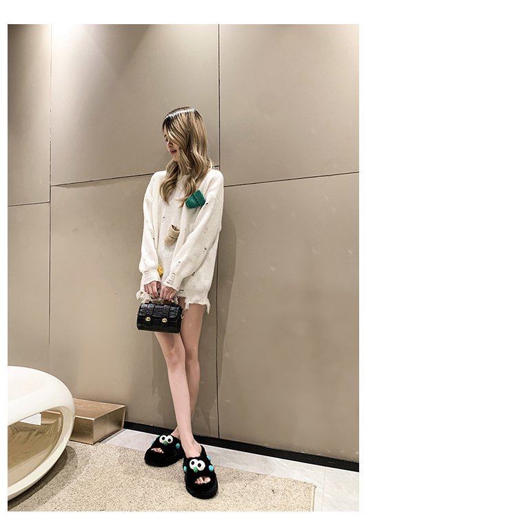 2023 새로운 겨울 귀여운 만화 두꺼운 바닥 마오 마오 슬리퍼 여성용 크로스 틈새 디자인 소녀 하트 면 슬리퍼