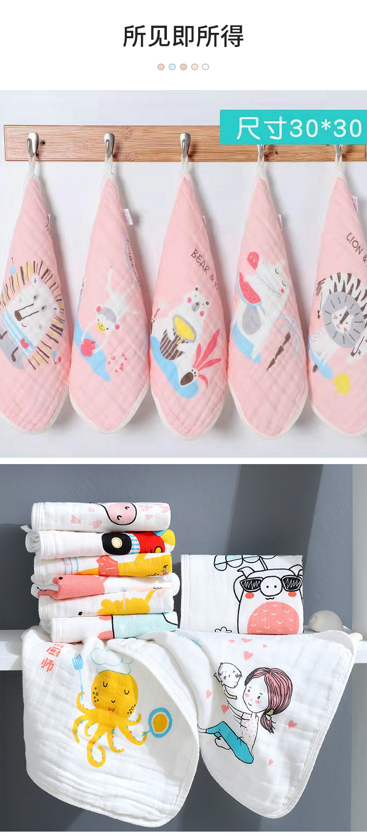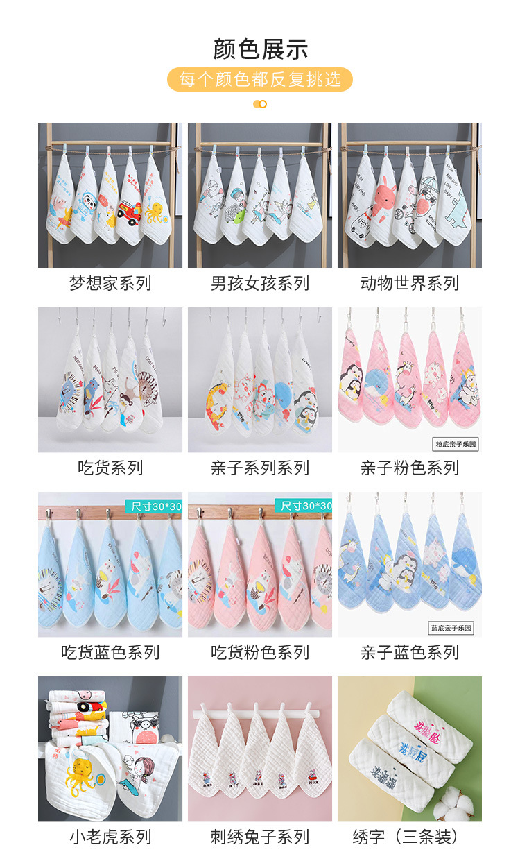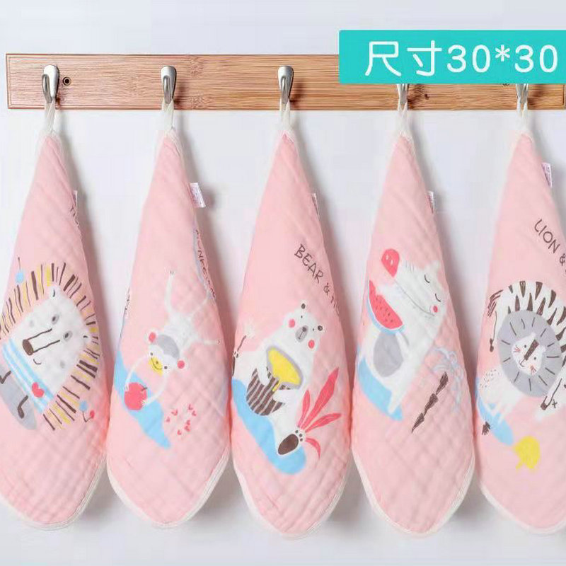 도매 6 층 거즈 만화 타액 타월 아기 어린이 귀여운 인쇄 작은 수건 후크 면 소프트 스퀘어 타월스토어 가기