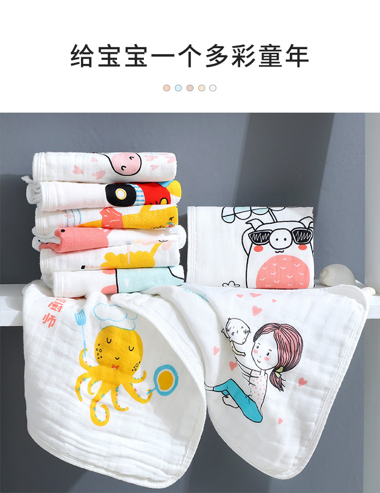 도매 6 층 거즈 만화 타액 타월 아기 어린이 귀여운 인쇄 작은 수건 후크 면 소프트 스퀘어 타월