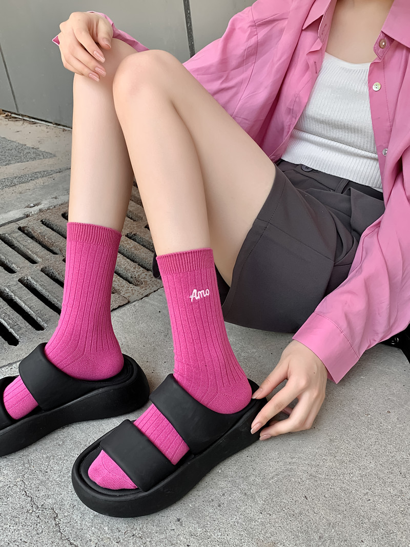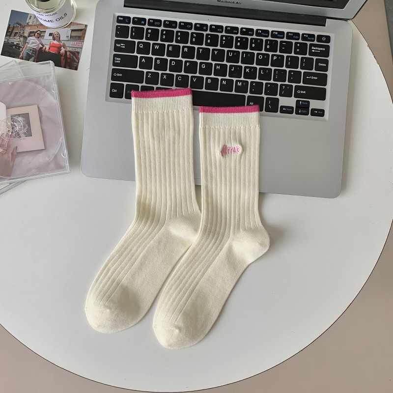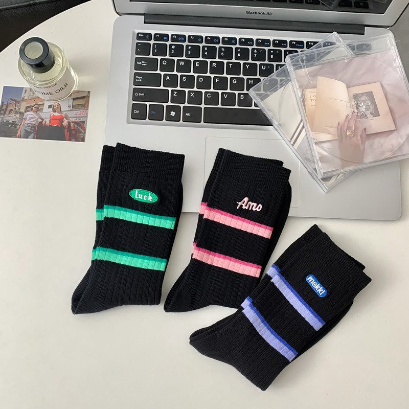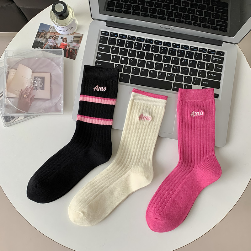한국 in 패션 스택 양말 편지 사랑 자수 여성 양말 다채로운 하이 웨이스트 겉옷 양말스토어 가기