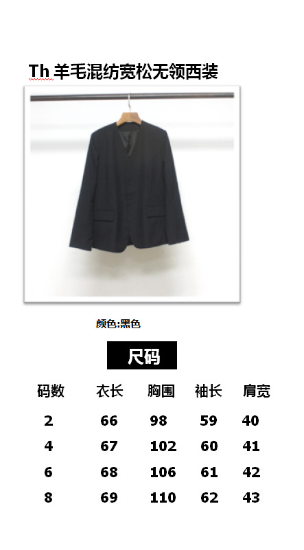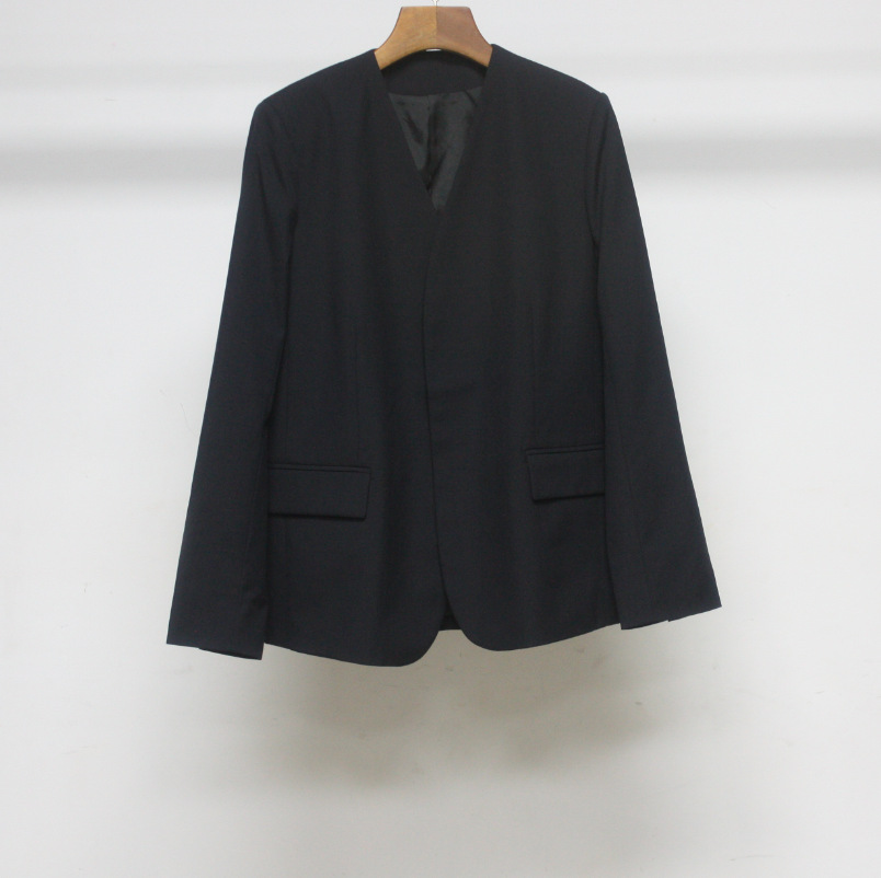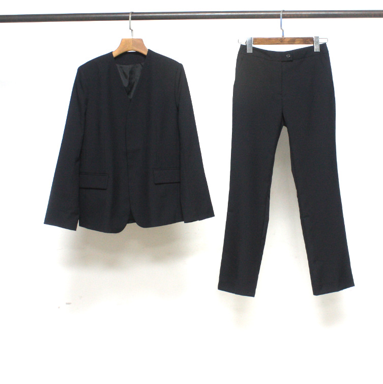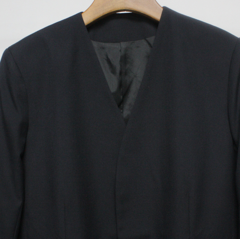 TH2023 가을 새 울 혼방 느슨한 칼라 없는 세트 + 바지 미니멀리스트 블랙 긴 소매 세트 슬림스토어 가기